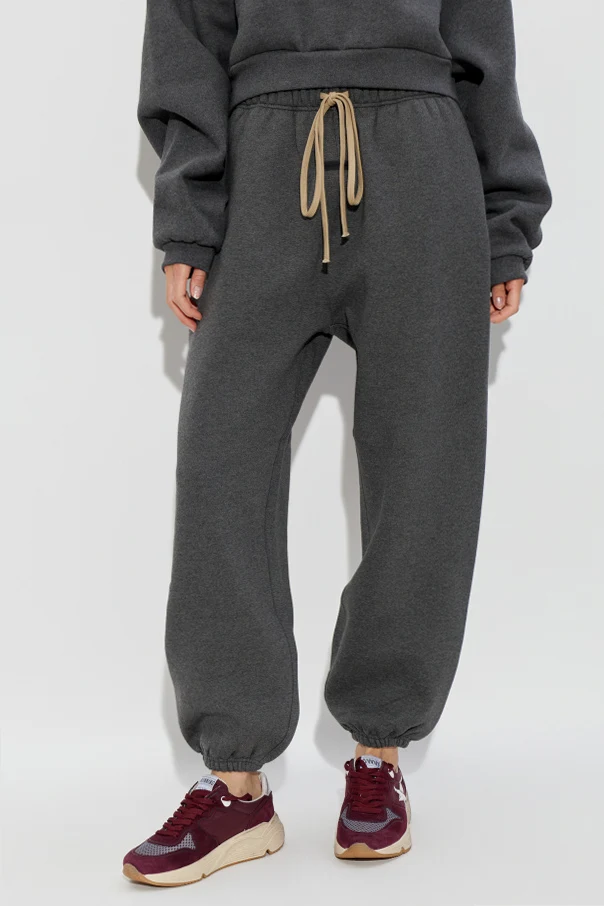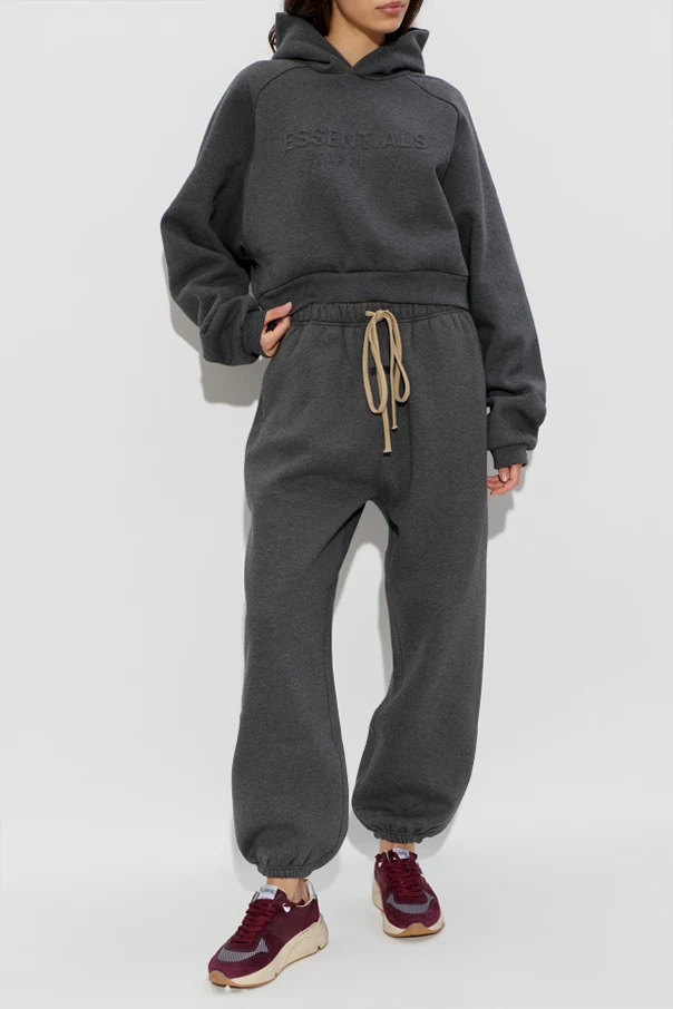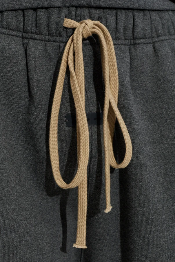 Imbued with understated sophistication, these Cotton Sweatpants in gray by Fear Of God Essentials effortlessly blend modern comfort with timeless sensibility. The luxuriously soft, fine-knit cotton fabric exudes a matte elegance, elevated by subtle tailoring in the relaxed, gently tapered silhouette. Distinctive, wide elastic cuffs lend a refined balloon-like volume to the legs, while the elastic waistband is accentuated by extended beige drawcords, providing both function and a dash of visual interest.