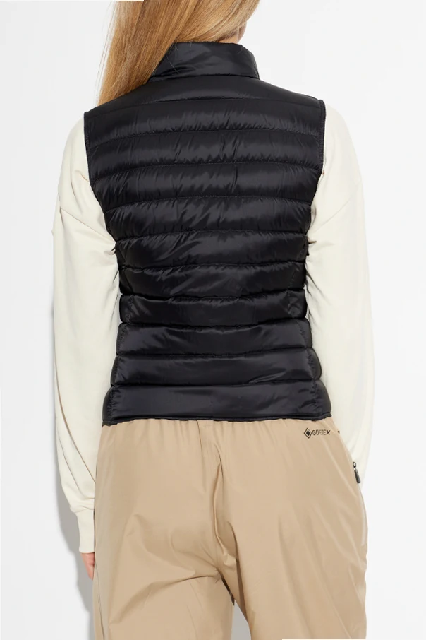 Distinctive horizontal quilting accentuates the monochromatic design, exuding subtle sophistication, and the perfectly matched round snap closures ensure effortless wear. The vest is adorned with Moncler’s signature embroidered logo at the chest—an emblem of unparalleled Italian craftsmanship and sporty refinement. Ideal for layering, the ‘Liane’ vest is a harmonious blend of luxury and functionality.