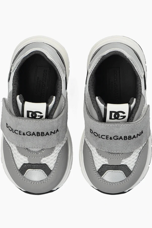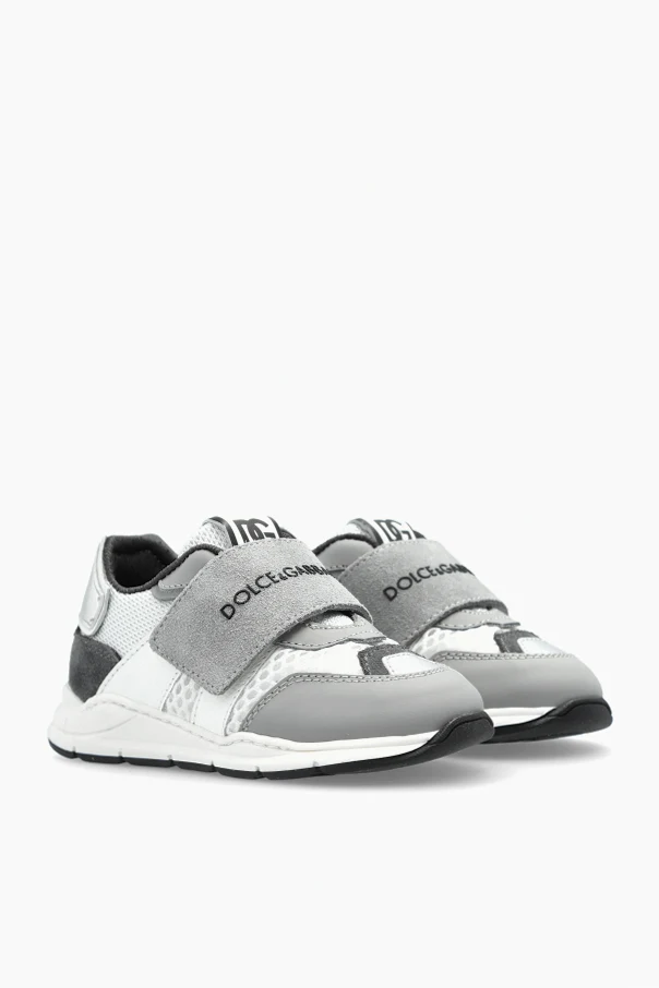 Elevate your child's first steps with these Dolce & Gabbana Kids Logo Sports Shoes , thoughtfully crafted to blend timeless elegance with contemporary design. The classic sneaker silhouette, finished in brilliant white with subtle gray and refined silver accents, radiates exclusivity in a minimalist expression.