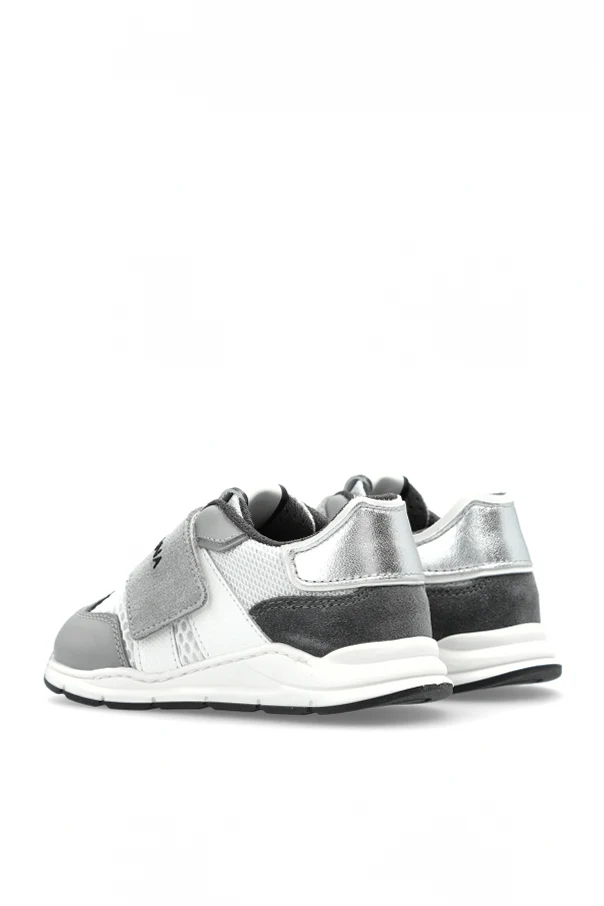 The premium upper combines supple leather and sophisticated technical mesh, providing superior breathability and enduring comfort. Distinctive suede and metallic-textured accents at the heel create a signature touch, while the rounded toe and robust, flexible rubber sole ensure both safety and freedom of movement for little feet.