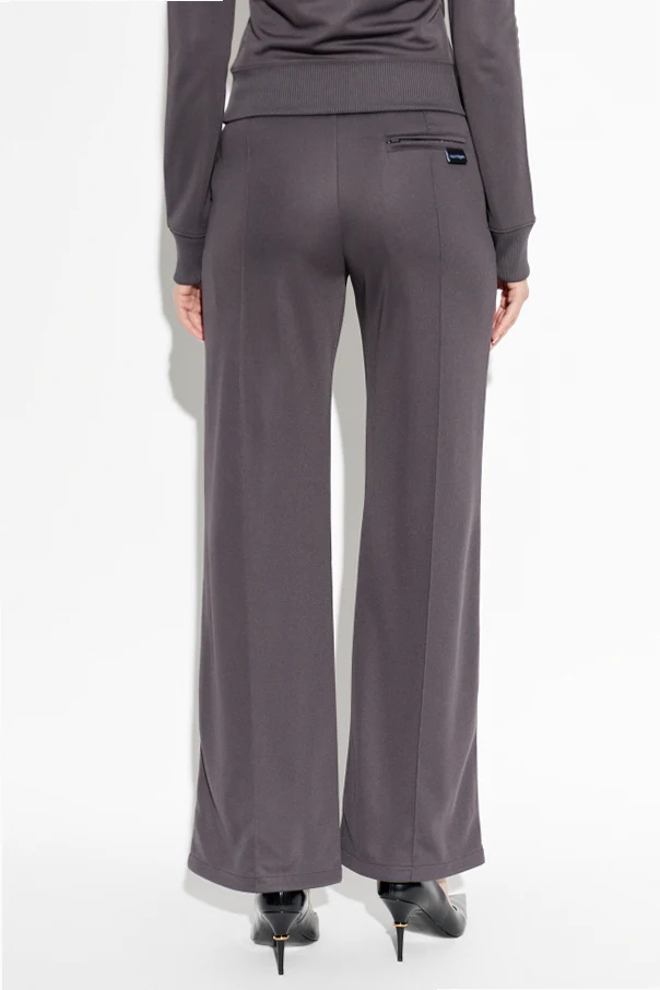 Crafted from a supple, premium knit, these pants offer both gentle luster and exceptional comfort. Functional front zippered pockets and a rear zippered pocket lend practical allure, further enhanced by the expertly embroidered white logo at the pocket for unmistakable exclusivity. The mid-to-high-rise construction completes this versatile, modern essential—equally suited for elevated daily looks or sophisticated occasions.
