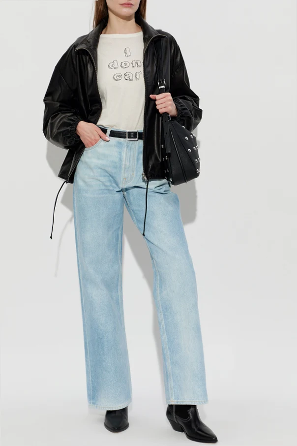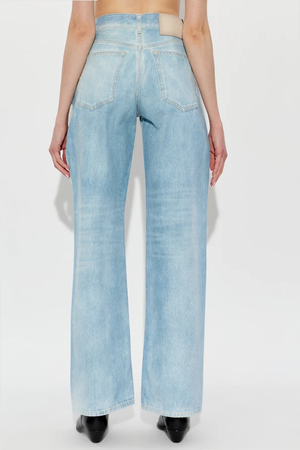 Introducing the “Korea” bootcut jeans by Haikure , a refined embodiment of classic denim sophistication. These high-waisted jeans, rendered in a crisp light blue hue, boast a subtly flared silhouette for an instantly flattering line. Crafted from premium, structured cotton denim without stretch, they provide an authentic, vintage-inspired texture and appearance.