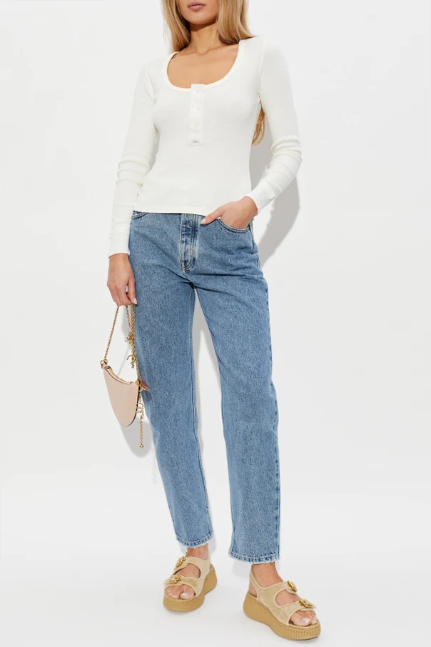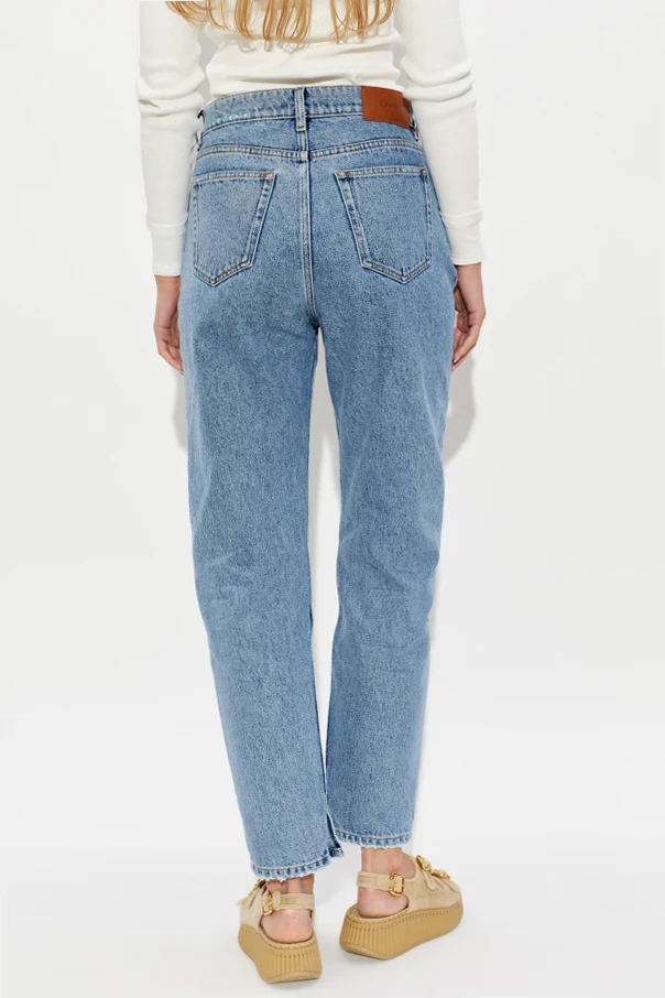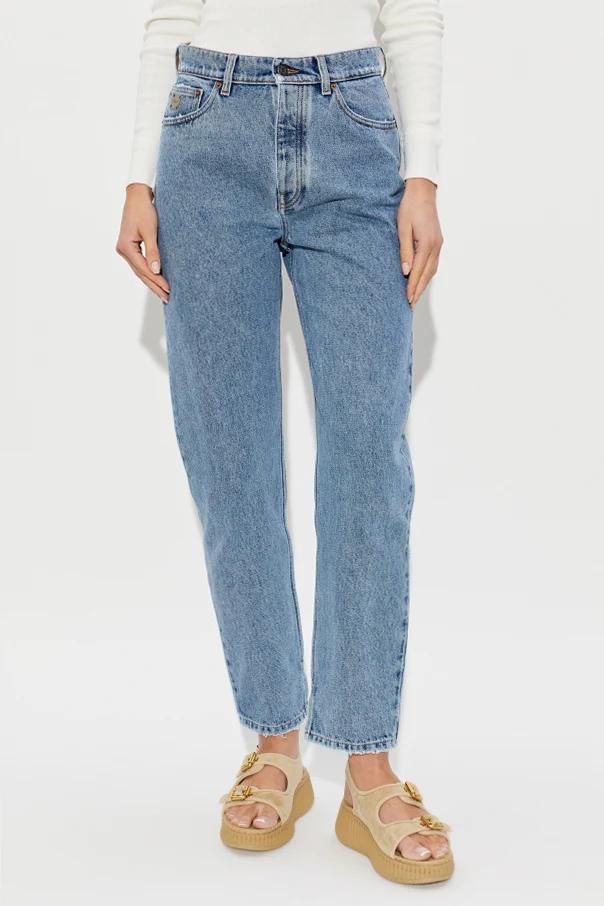 These straight-cut jeans from Chloé epitomize timeless sophistication through a refined, regular silhouette. Meticulously crafted from premium non-stretch denim , their classic blue hue is enhanced by a subtle, singular vintage wash, exuding understated elegance. The renowned construction, exhibiting an authentic denim weave, ensures lasting structure and a distinguished touch, hallmarking the piece as both classic and elevated.