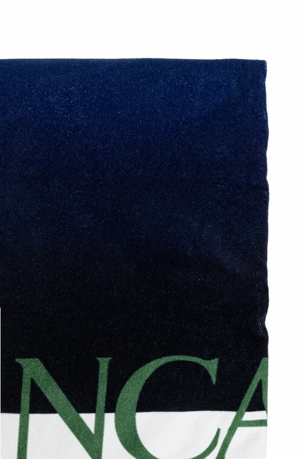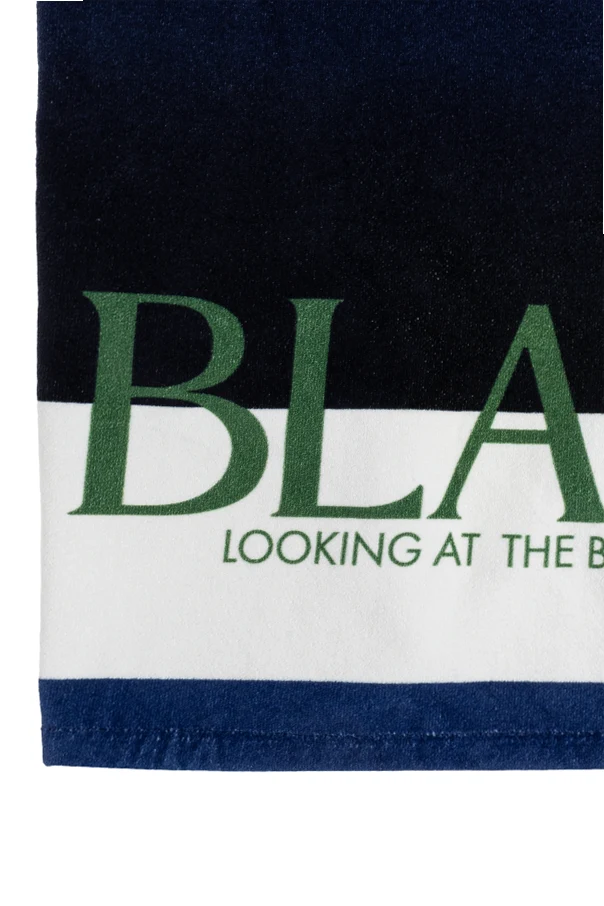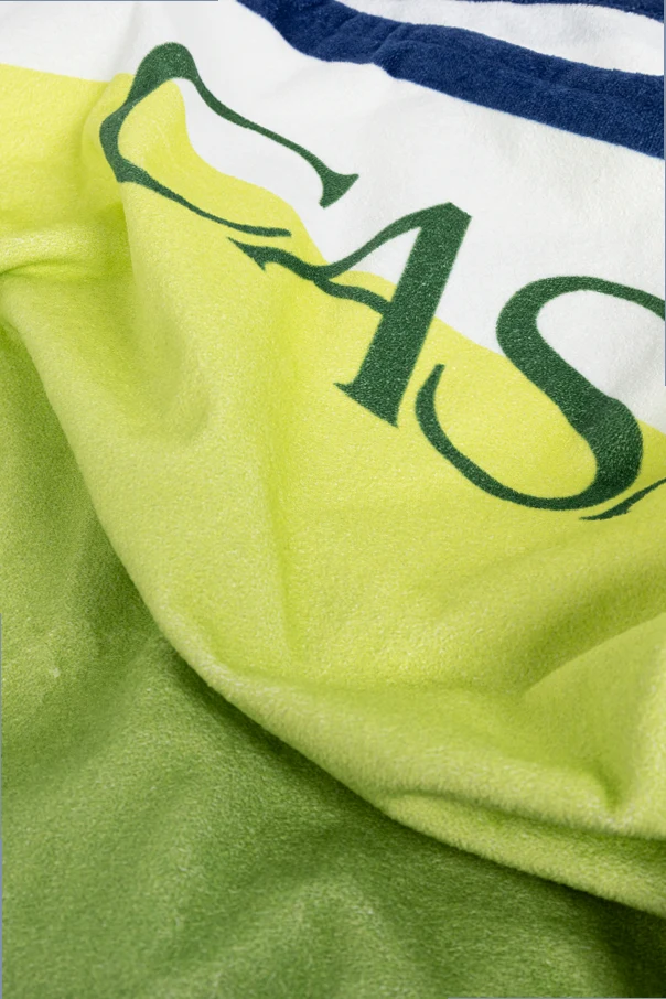 Indulge in refined seaside luxury with the Casablanca Beach Towel, meticulously crafted for those who appreciate understated opulence. This generously sized, rectangular towel captivates with its bold, navy blue upper accented by a pristine white band. A prominent, stylized brand name stands out in striking light green, while the inspiring phrase "LOOKING AT THE BEAUTY OF THE WORLD" graces the center—an eloquent testament to Casablanca’s artistic vision.