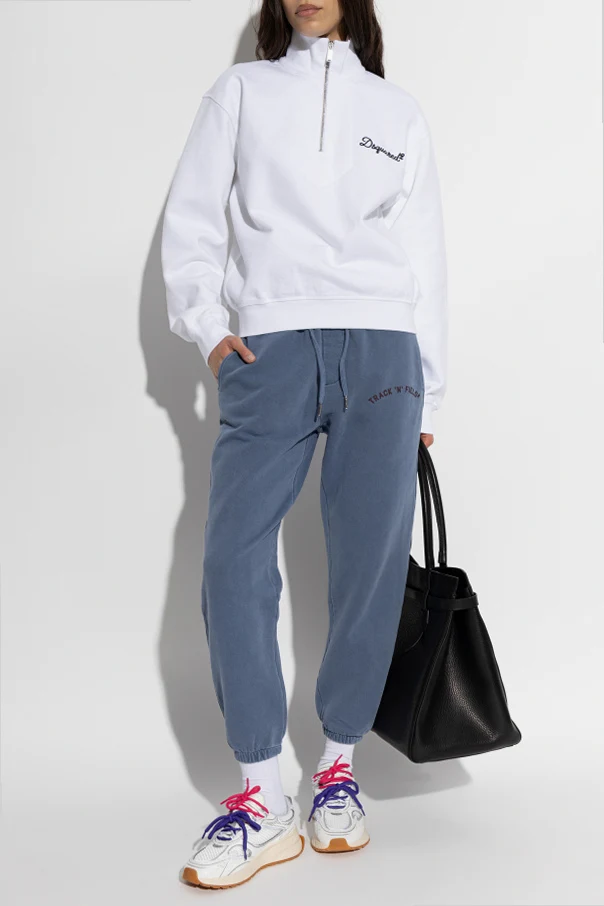 Immerse yourself in understated sophistication with these blue logo sweatpants by Dsquared2 . Crafted from luxuriously soft, high-quality cotton, their classic relaxed-fit silhouette boasts a subtly tapered leg and refined high-rise waist for a flattering, modern profile.