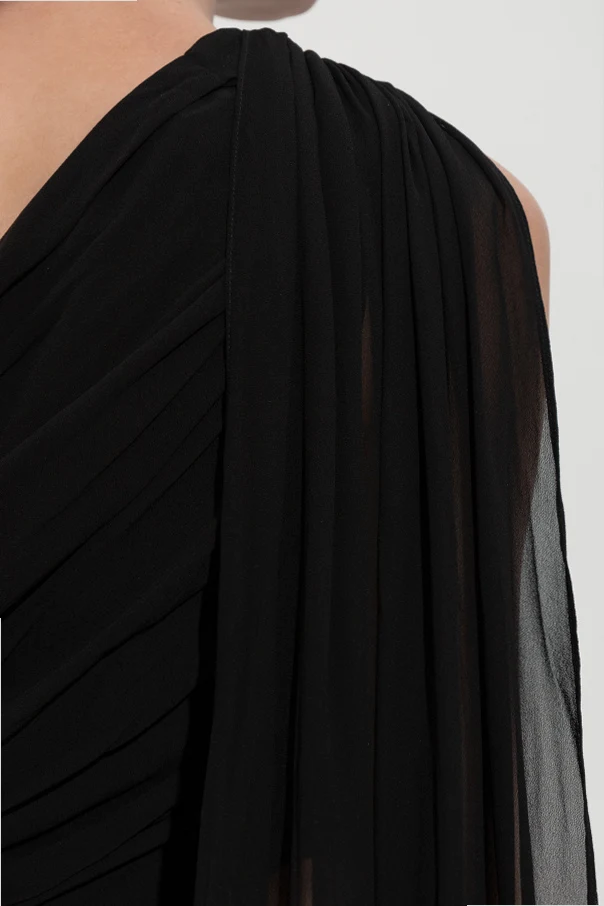 The outer layer, crafted from a featherweight, semi-sheer viscose, features subtle all-over ruching, expertly executing an opulent draped look. Its monochrome palette and absence of visible logos or embroidery reflect a discerning approach—celebrating pure, minimalistic elegance.