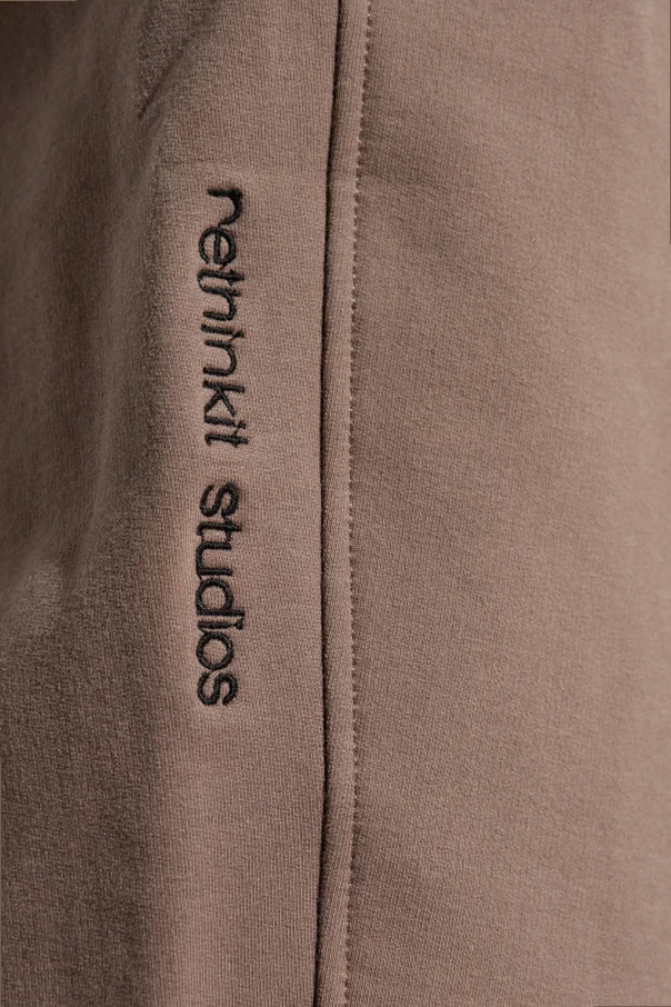 Minimalist in design, the piece features a single, artfully embroidered vertical “rethinkit studios” inscription along the left leg, providing a subtle yet recognizable designer signature. The rich, monochromatic brown shade imbues modern elegance, while meticulous attention to detail and premium fabrication deliver exceptional comfort and enduring style.