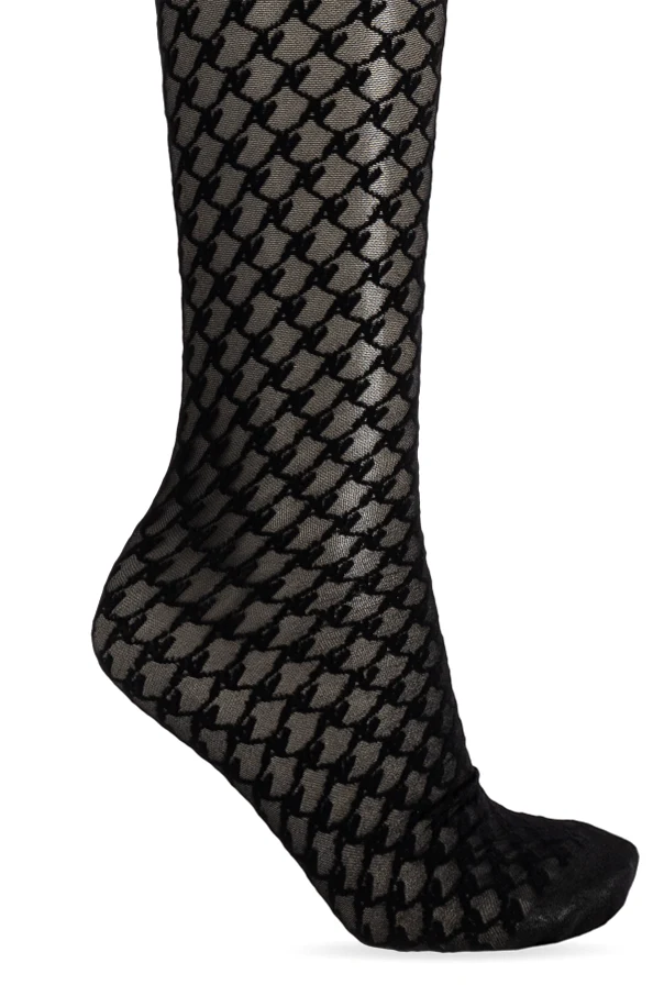 Expertly crafted from premium polyamide blended with elastane, these tights effortlessly contour the leg, providing both remarkable comfort and exceptional resilience. The elegant interplay of transparent and opaque elements imparts a sense of modern allure, while the meticulously placed graphic motifs elevate the look with an understated yet distinctive character.