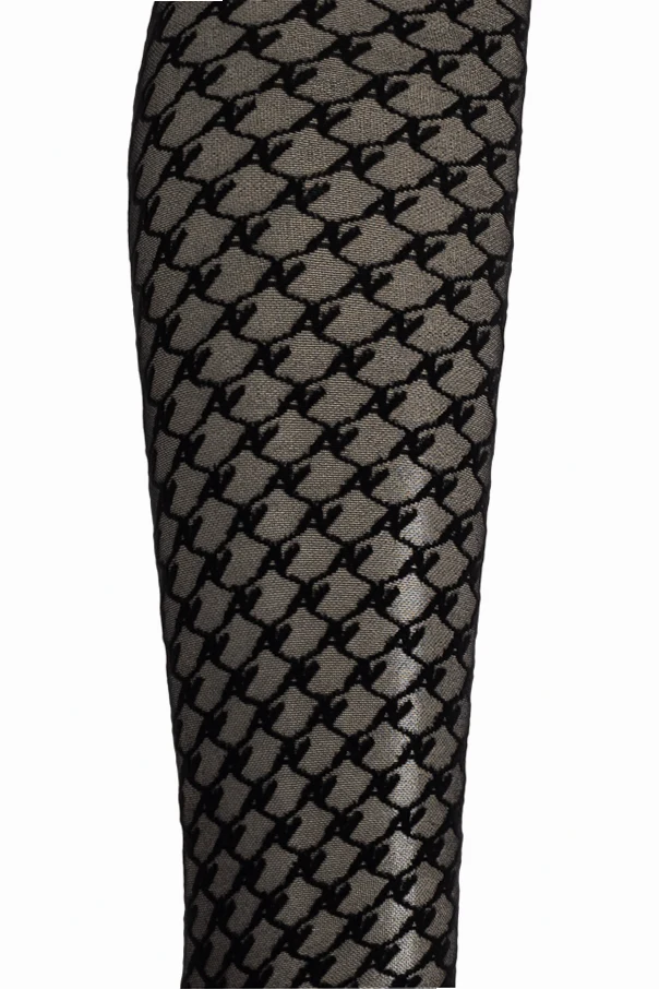 These classic women's tights embody the essence of refined sophistication, enveloping the legs in an exquisite, semi-sheer black finish accentuated by a subtle matte effect. The signature AVAVAV designer logo forms an immaculate, repeated grid across the entire surface, immediately recognizable as an emblem of exclusivity and luxury.