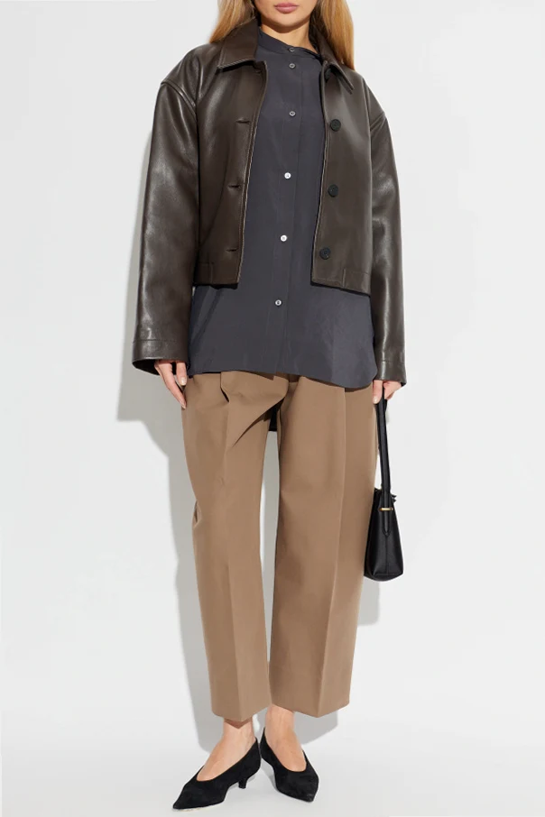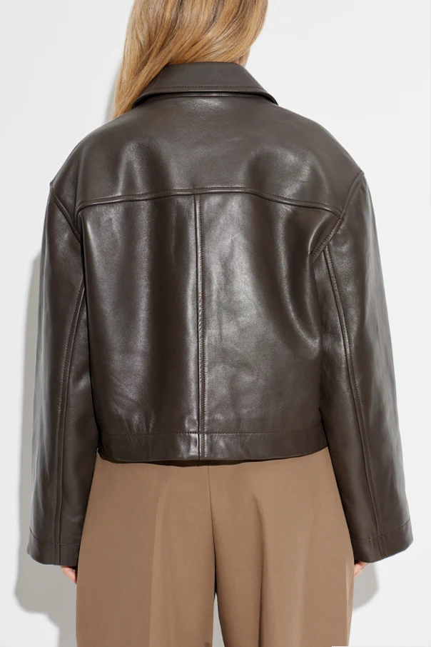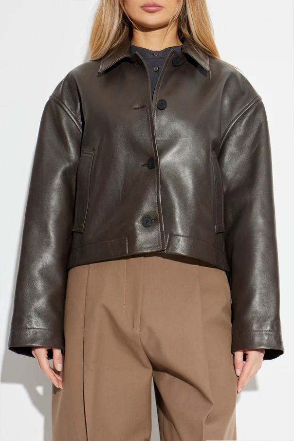Imbued with timeless sophistication, the Hain Leather Jacket by Studio Nicholson epitomizes understated elegance. Crafted from sumptuous natural lambskin, its surface offers a refined, subtle sheen that elevates classic outerwear to new heights. This piece features a rich, deep brown hue, effortlessly complementing any discerning wardrobe.