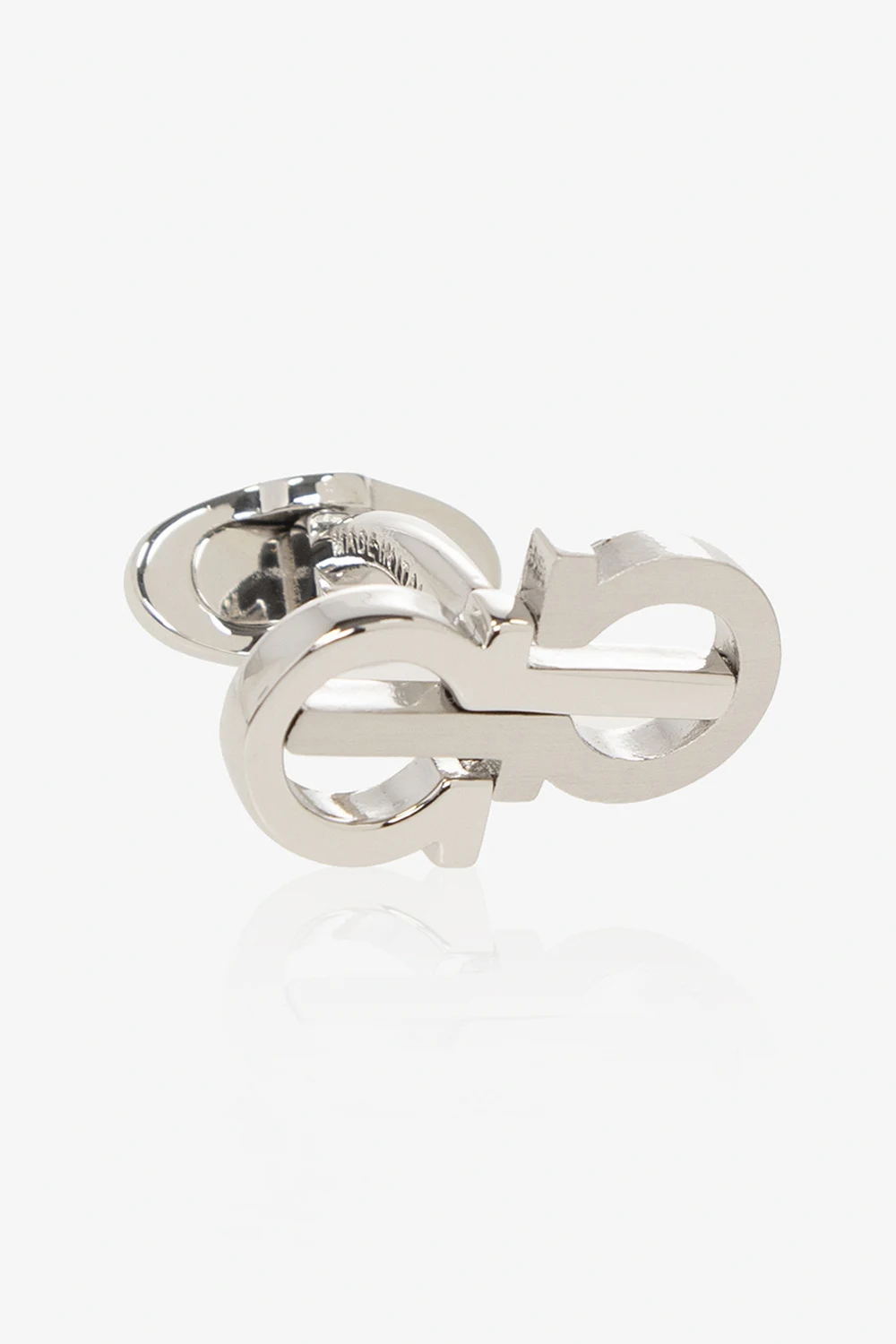 Logo-shaped cuff links from FERRAGAMO. Made of brass in silver-tone.