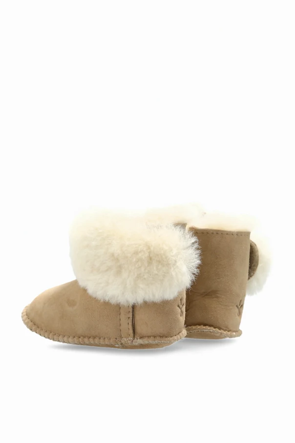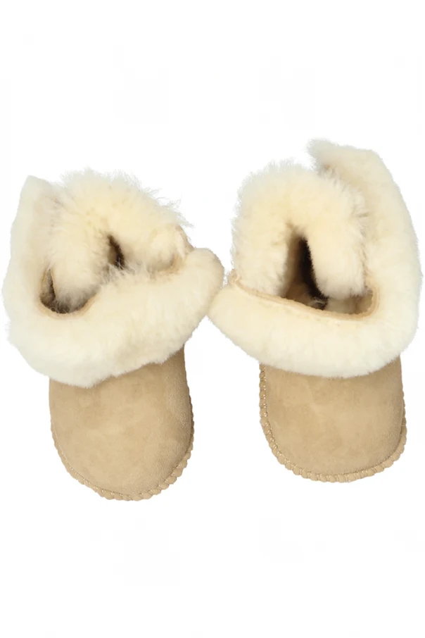 The Baby Bootie Deluxe by EMU Australia Kids offers unparalleled warmth and sophistication for your little one's first steps. Meticulously crafted in a short, rounded boot silhouette, these ankle-high booties envelop tiny feet in comfort and style. The outer is fashioned from sumptuously soft suede, while the interior and wide, turn-down collar are lined with velvety, shearling-like wool—evoking the plush feel of natural sheepskin.