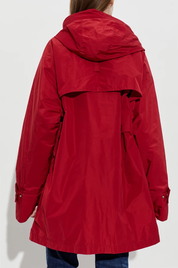 Its distinctive fabric features a gentle sheen, masterfully crafted from technical synthetic fibers renowned for their lightness and impeccable moisture resistance. A generously sized, adjustable hood with sleek drawcords offers both practical protection and a touch of inventive flair for inclement days.