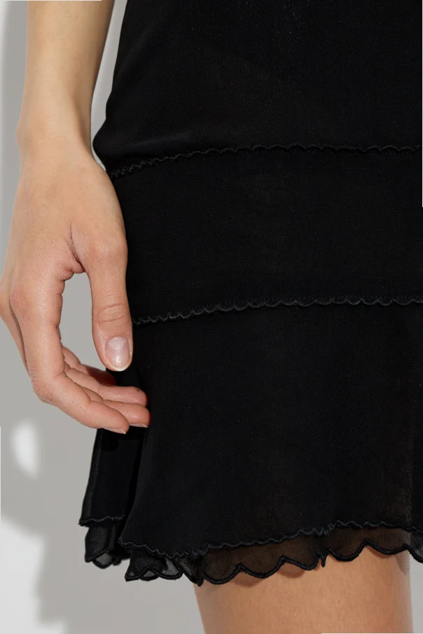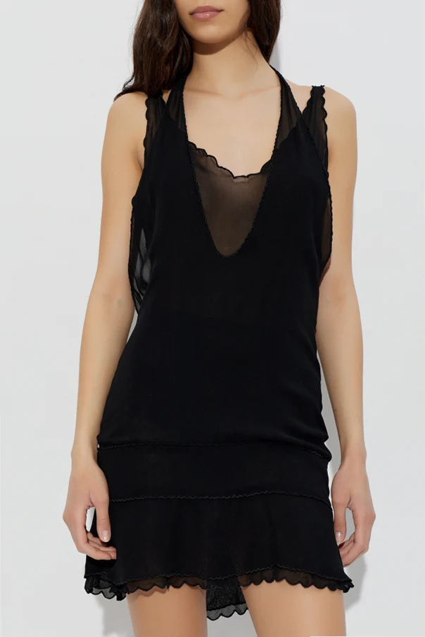The Deleria Dress by KNWLS embodies refined sophistication with a modern twist. Crafted from luxurious, airy viscose, this mini dress enchants in black , offering an exquisitely smooth, unadorned silhouette that flows effortlessly with every movement. Its lightweight, semi-sheer fabric delicately veils the body, lending a sense of intrigue and sensual poise—particularly around the V-shaped neckline and back.