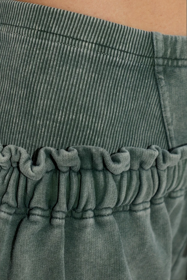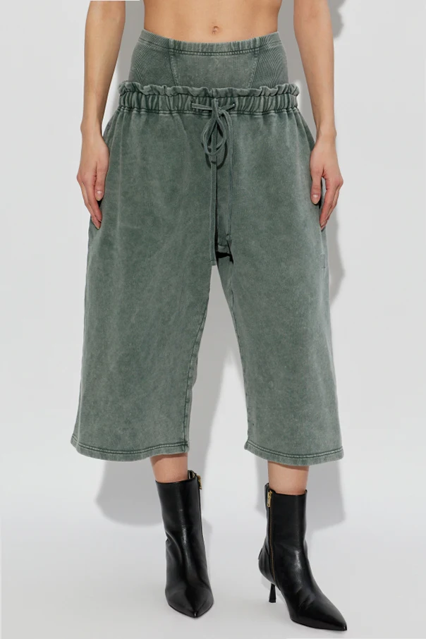 Embrace refined comfort with the Haze shorts in green , a sophisticated offering from KNWLS. Crafted from premium washed cotton, these culotte-length shorts exhibit a gracefully wide-leg silhouette, perfectly tailored for both effortless movement and understated allure.