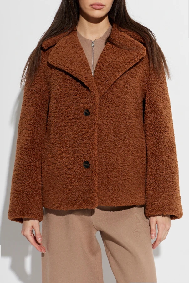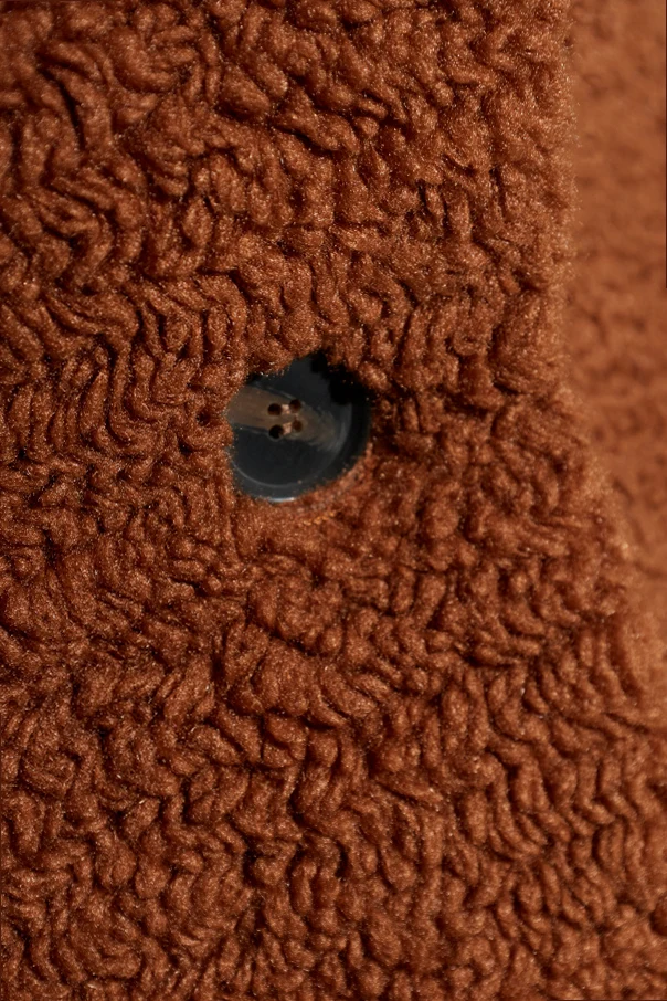 Enveloped in a deep, warm brown, its plush sherpa fabric exudes both contemporary allure and unparalleled comfort. The wide, classic collar enhances the jacket’s inviting softness and volume, while three oversized matte buttons in a darker hue make a refined statement. Seamlessly integrated side slip pockets offer practicality without detracting from the jacket’s pure lines.