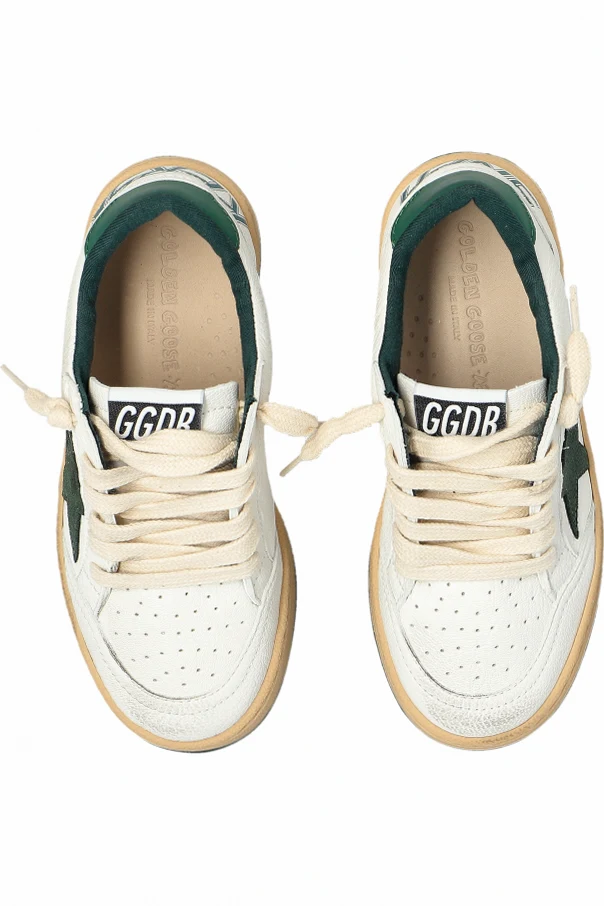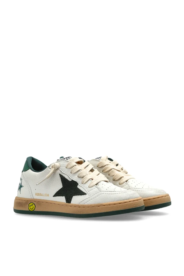 Elevate your child's wardrobe with the Ball Star New Sneakers by Golden Goose Kids, exquisitely crafted for those who appreciate an artful balance between urban sophistication and playful charm. Cloaked in pristine white high-quality leather, the low-top silhouette presents an enduring elegance, accentuated by delicately perforated panels and a rounded toe for timeless appeal.