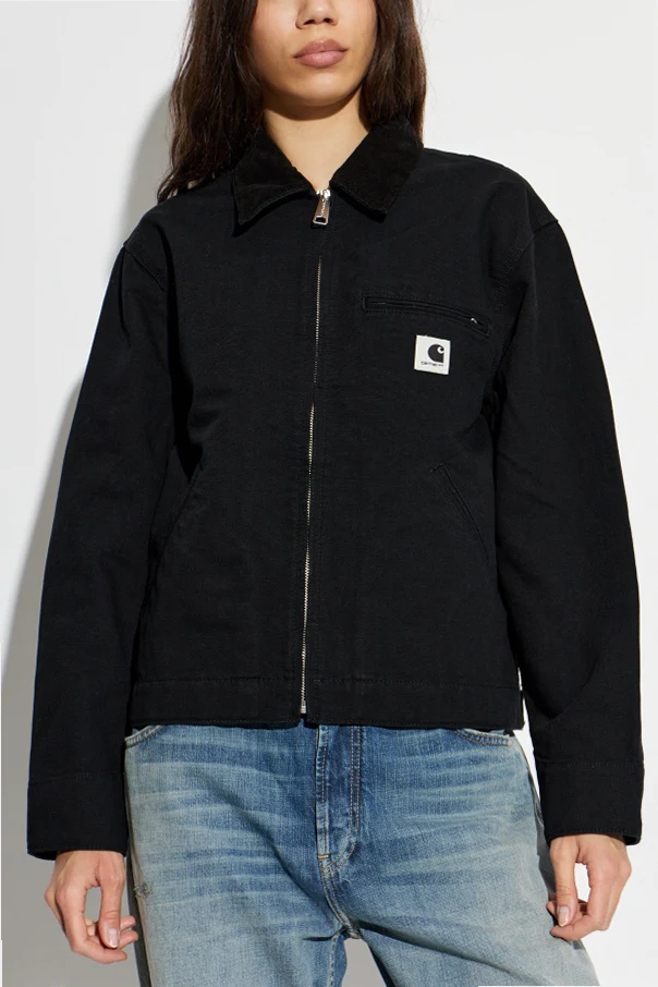 The minimalist design features a discreet zip closure along the front, complemented by a classic dark corduroy collar for subtle textural contrast. A distinct vertical zip chest pocket on the left and the signature Carhartt logo patch in crisp white complete the design, making each detail count and attesting to meticulous craftsmanship.