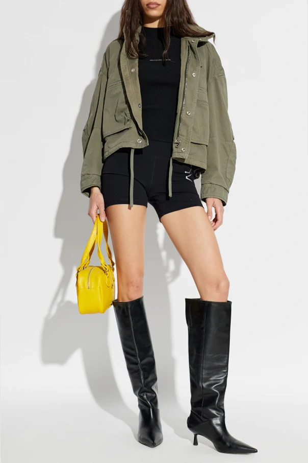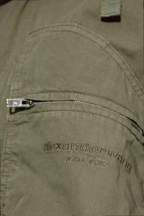Discover the epitome of modern sophistication with this Alexander Wang Logo Jacket in striking solid color . Designed with a relaxed, gently oversized silhouette reminiscent of a refined bomber or windbreaker, this jacket exemplifies the effortless exclusivity of contemporary casual wear. Crafted from premium, durable cotton twill, its matte finish and absence of overt patterns highlight the masterful construction and thoughtful detailing.