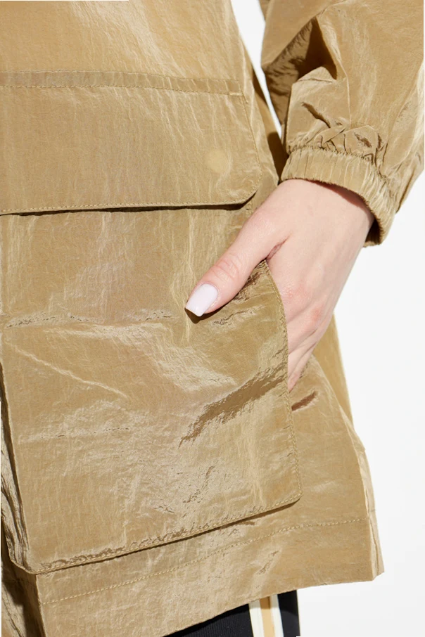 The Rylan Jacket by The Upside exemplifies contemporary sophistication in a refined beige hue. Crafted from a lustrous, lightweight technical fabric with a subtle satin sheen, it gracefully merges modern aesthetics with everyday functionality. The relaxed silhouette, featuring dropped raglan shoulders and an extended back, delivers an effortlessly chic yet comfortable fit.