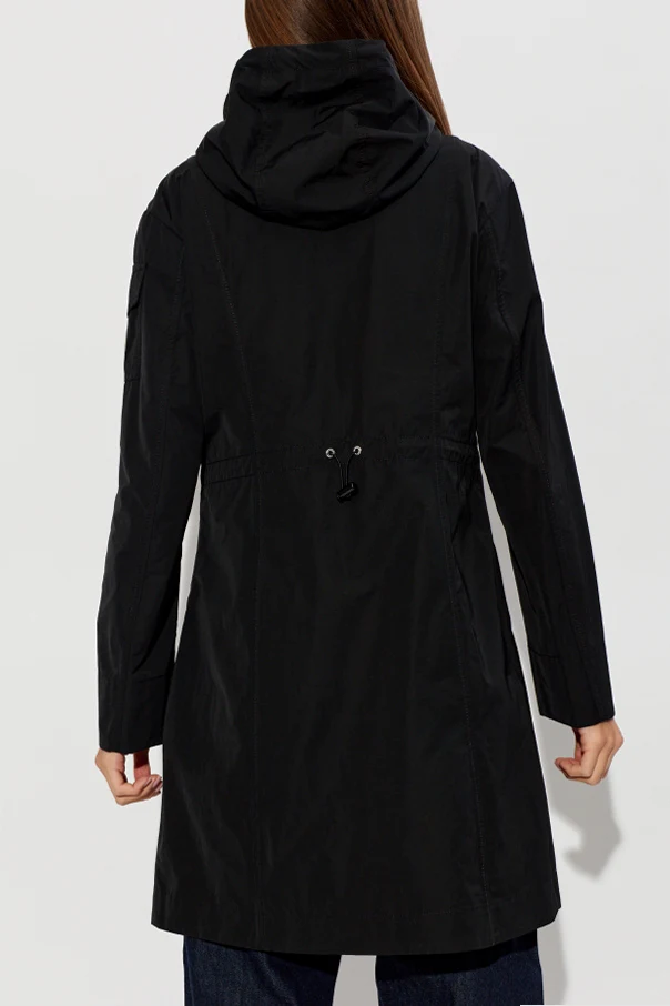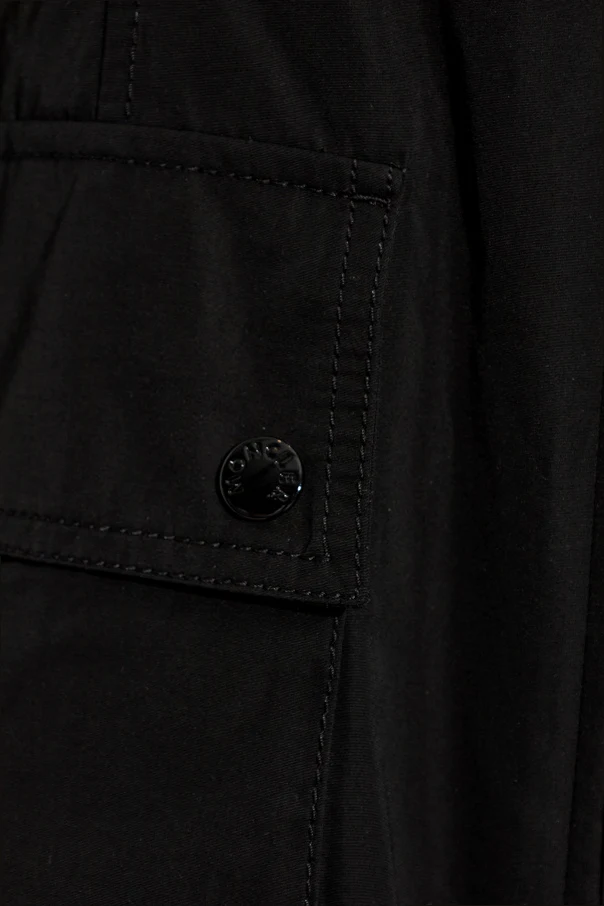 Signature elements include an integrated hood with drawstrings tipped in polished metal, a full-length two-way zipper, and two spacious patch pockets secured with snap flaps. Discreetly embossed metal snaps and a subtle round emblem at the left shoulder affirm its Moncler heritage, delivering subtle exclusivity.