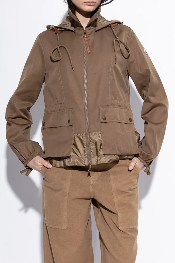 The ‘Adenium’ Jacket by Moncler embodies refined sophistication with a distinctly modern silhouette. Crafted from a harmonious blend of sumptuous cotton and resilient polyester, this exquisite piece features a minimalist, solid black composition enhanced by contrast textures—a matte fabric body subtly offset by satiny, lustrous inserts on the hood and hem for a touch of understated glamour.