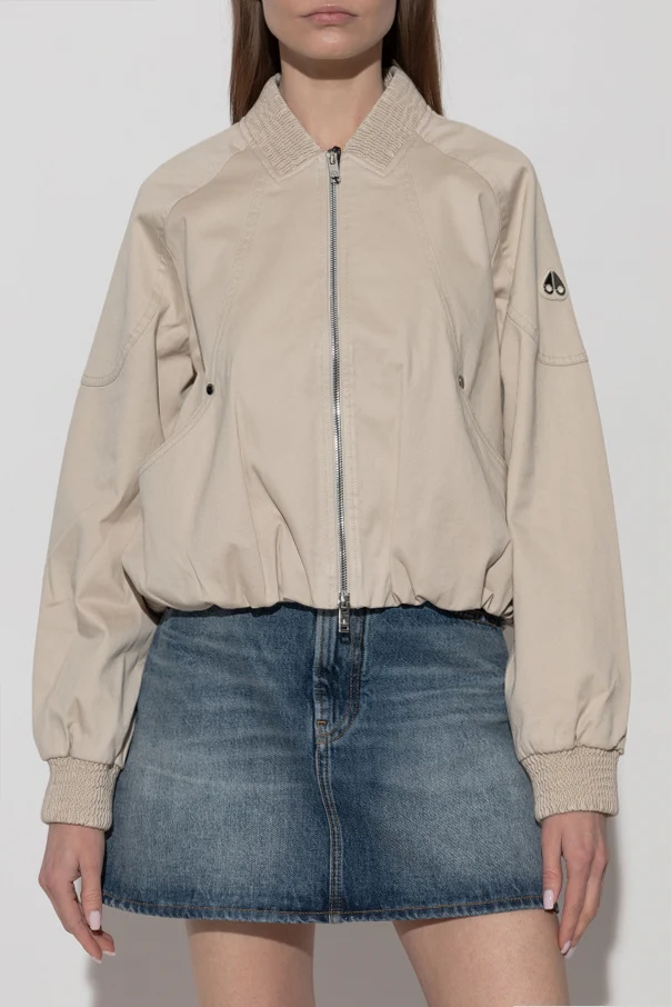 Imbued with understated sophistication, this beige cotton bomber jacket from Moose Knuckles exemplifies minimalist refinement. Presenting a short, oversized silhouette gently accentuated at the shoulders, this piece is impeccably crafted from a matte, natural cotton fabric—ideal for transitional seasons. The classic raglan sleeves contribute to a relaxed, effortless aura, while the wide, ribbed hems and high, knitted collar elevate its luxurious appeal.
