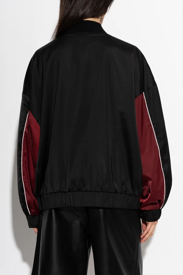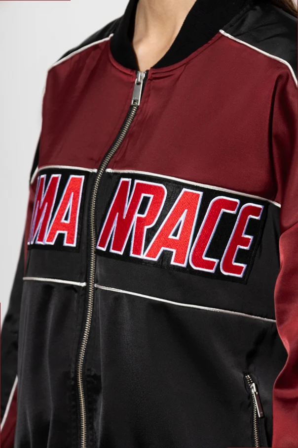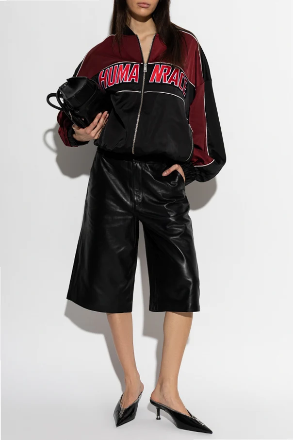The striking black base is artfully offset by a rich, deep burgundy accent across the upper body and outer sleeves, delivering a dramatic yet harmonious interplay of color. A bold, embroidered “ HUMANRACE ” motif spans the chest, adding contemporary distinction and brand identity. The front zipper closure ensures both style and ease.