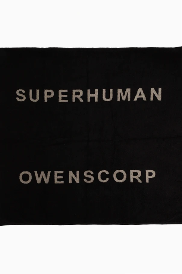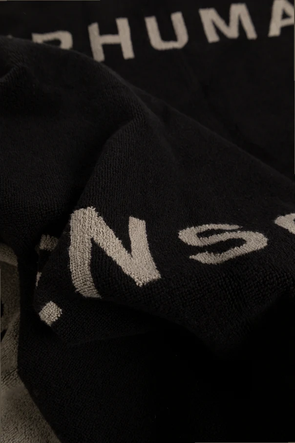 Immerse yourself in understated luxury with this black designer beach towel by Rick Owens. Crafted from plush terry cotton, its expansive rectangular silhouette offers both generous coverage and supreme comfort on sun-soaked days. The design captivates with uncompromising minimalism: a bold, central “SUPER” inscription and subtle “SUPERHUMAN OWENSCORP” detailing, each rendered in crisp, unembellished typography for a strikingly modern aesthetic.