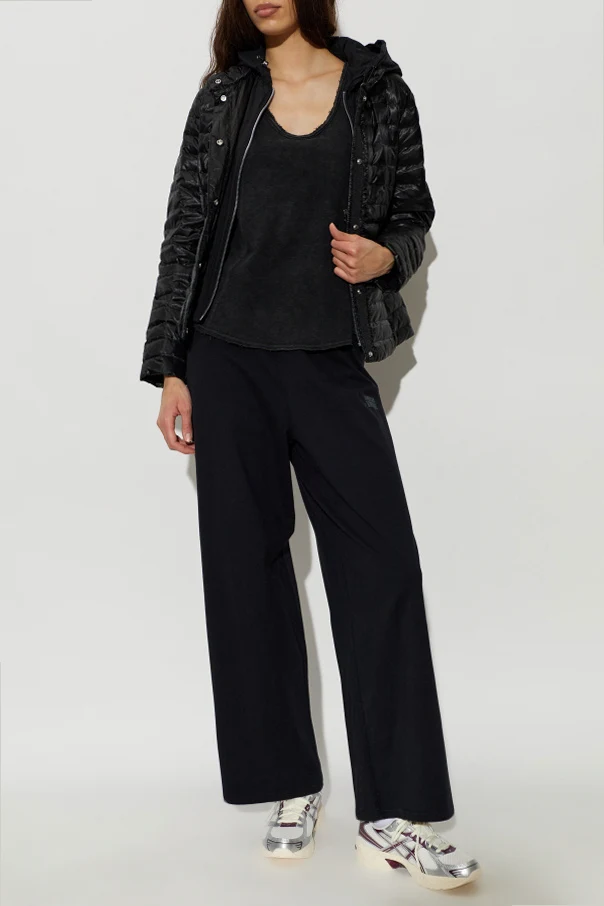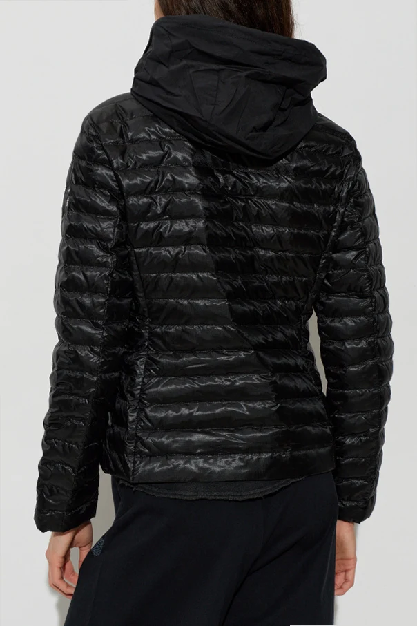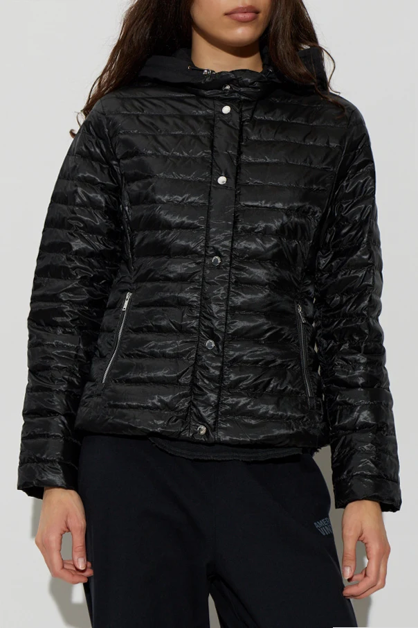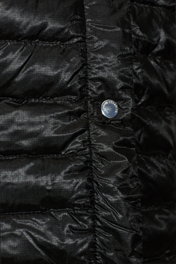 Embrace refined comfort with the Down Jacket with Detachable Hood by Moose Knuckles, presented in a lustrous black hue. This classically contoured, subtly tailored silhouette graces the hips, while expertly crafted horizontal quilting ensures both visual intrigue and an even distribution of the premium down fill. The outer shell—crafted from a resilient blend of nylon, cotton, and elastane—offers a sophisticated sheen, wind resistance, and water-repellent performance.