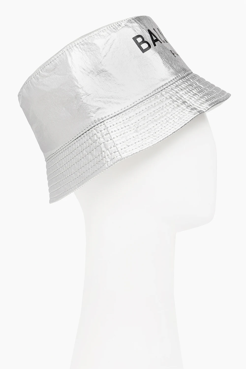 Silver-tone hat from Balmain Kids. With a narrow brim, this item showcases a black logo printed on the front.