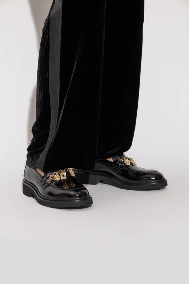 The Viv Rangers loafers by Roger Vivier are a masterful expression of modern sophistication and classic allure. Crafted from lustrous patent leather, their sleek almond-shaped silhouette and substantial, elevated sole lend a bold yet elegant attitude. Each step reveals the superior craftsmanship and the refinement of premium materials, with a meticulously constructed rubber sole designed for durability and comfort.