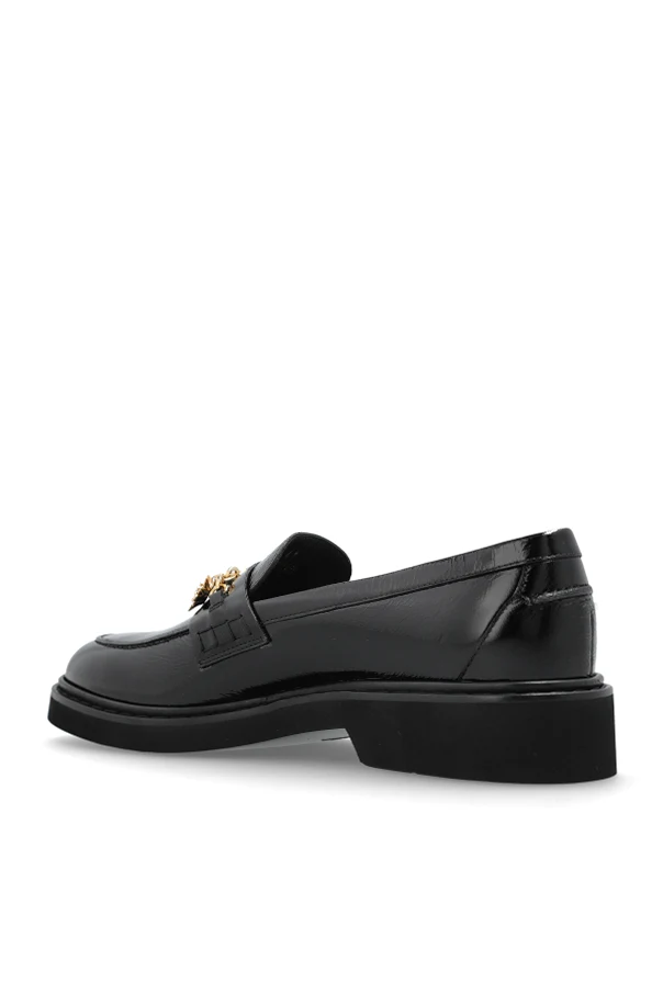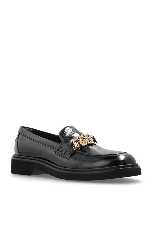 The crowning feature is an opulent, gold-toned chain adorned with designer-inspired charms and signature emblems, making every pair unmistakably exclusive. Polished to perfection, these black loafers exude versatile luxury, suited to elevate both refined and contemporary wardrobes.