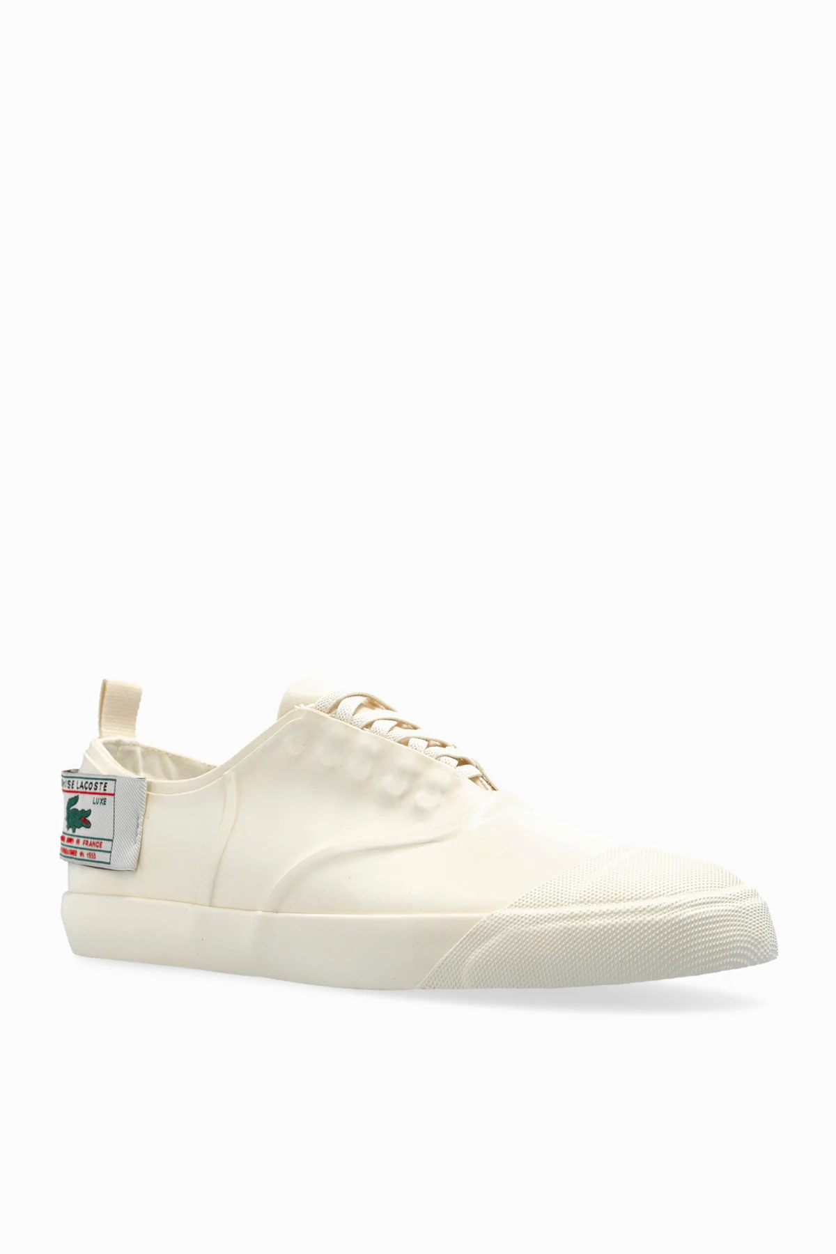 Presenting the epitome of sporty elegance, the Rene sneakers by Lacoste are a testament to refined design and superior craftsmanship. Crafted in a pristine white, these low-profile sneakers feature a rounded toe and a sleek silhouette, exuding a subtle sophistication that is unmistakably chic. Constructed from smooth, high-quality material, these sneakers promise an unparalleled elegance. The front lace-up design is complemented by the iconic Lacoste logo patch adorning the side, while a practical heel tab ensures effortless wearability. Inside, the sneakers boast a luxuriously padded lining and insole, offering supreme comfort with every step. The durable rubber outer and sole further enhance the shoe\'s functionality and style. Why Choose This Product? Timeless design with a modern twist High-quality materials for lasting wear Iconic Lacoste branding for a touch of heritage Comfort-focused interior for all-day wear