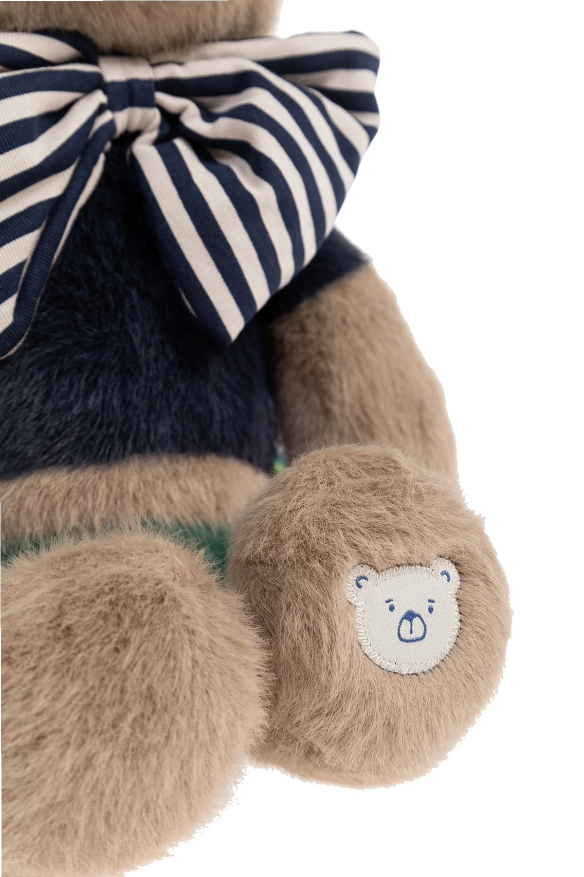 Imbued with timeless charm, the Miś Przytulanka by Liewood is an exquisitely crafted plush bear designed to delight young hearts and discerning admirers alike. Its soft, beige exterior, fashioned from the finest recycled polyester, offers a tactile experience that radiates both comfort and sophistication. Adorned with a sumptuous navy sherpa sweater and distinctive green leggings, this bear exudes refined style. A bold, striped bow in navy and white elegantly graces its neck, serving as a signature accent. Thoughtful attention to detail is unmistakable, with an artful embroidered patch on one foot; a subtle nod to designer heritage. Why choose this product? Luxuriously soft, eco-friendly materials Impeccable, fashion-forward attire elevates its exclusivity Charming details and refined finishes Perfect as a treasured gift or distinctive nursery accent