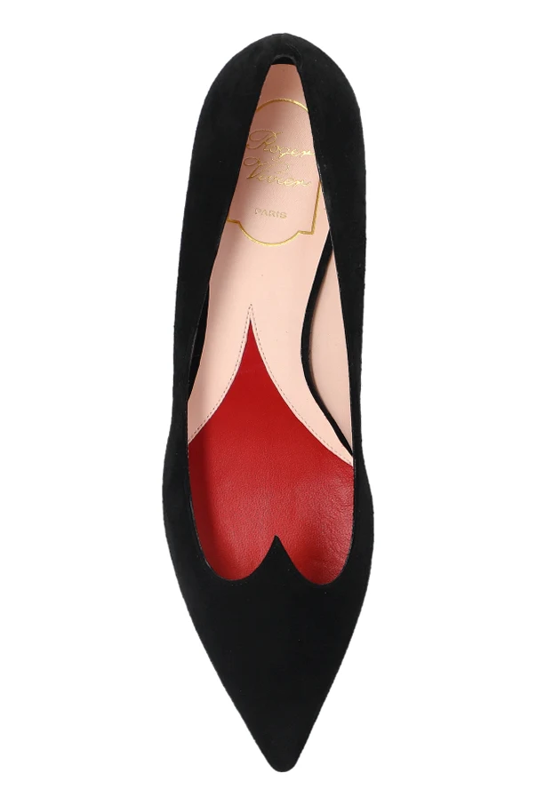 Introducing the exquisite I Love Vivier suede heels from the exclusive collection of the renowned designer, Roger Vivier . These shoes are the epitome of timeless sophistication, crafted with an elegant pointed toe that enhances their classic allure.