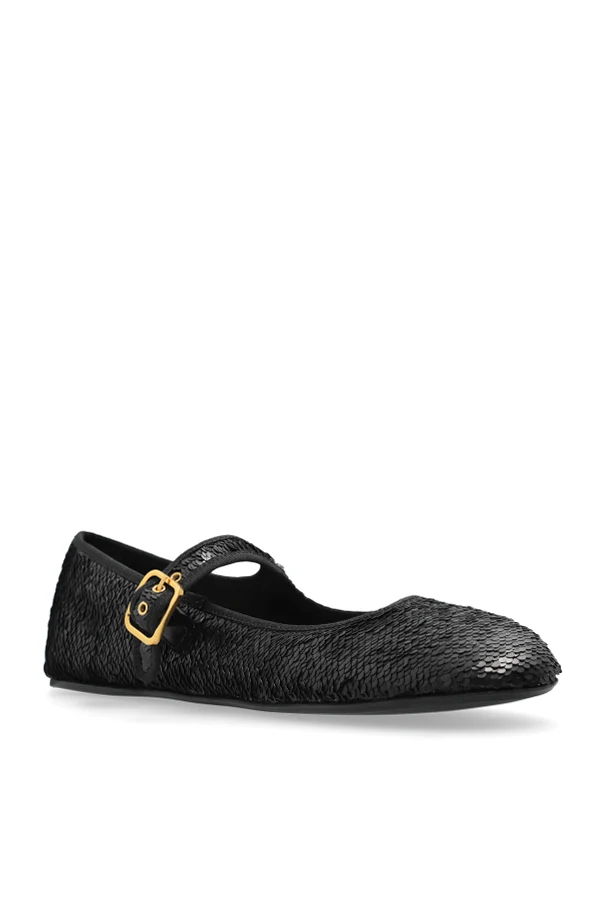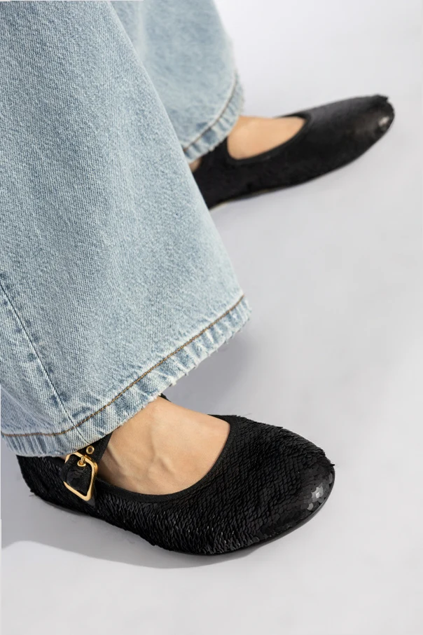 Introducing the Hoola Sequin Ballet Flats by AGL, a harmonious blend of elegance and sophistication. Crafted from a luxurious sequined fabric, these flats exude a subtle sparkle that elevates any ensemble. The classic rounded shape and minimalist design are complemented by a chic strap closure, adorned with a gold buckle for an exquisite touch.