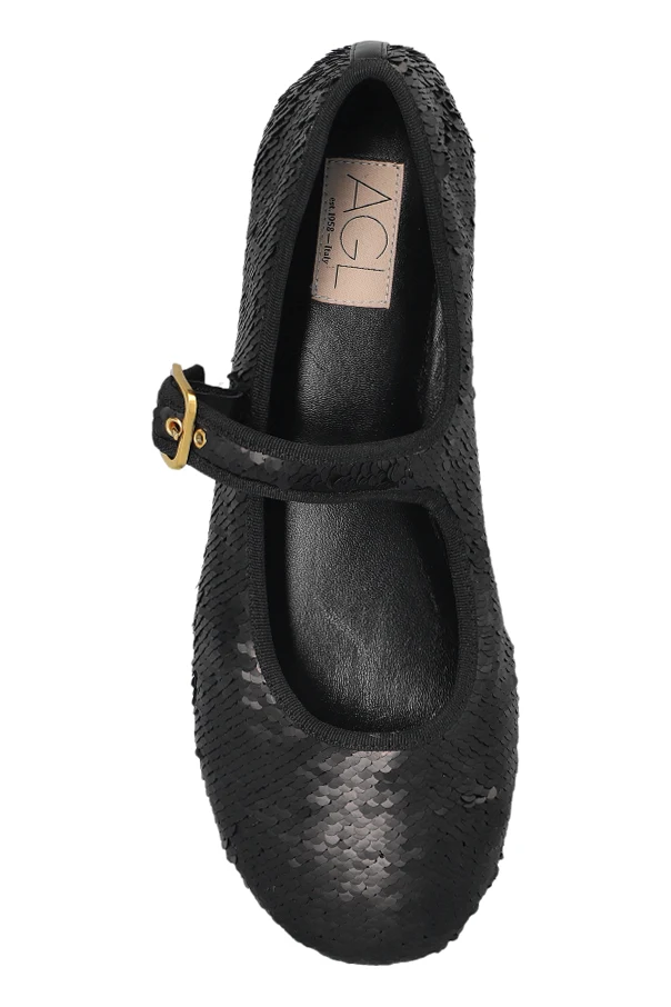 The flats feature a dominant black hue , ensuring their versatility and ease in pairing with various outfits. Inside, the recognizable AGL logo asserts authenticity, while the impeccable craftsmanship reflects the brand's esteemed Italian heritage .