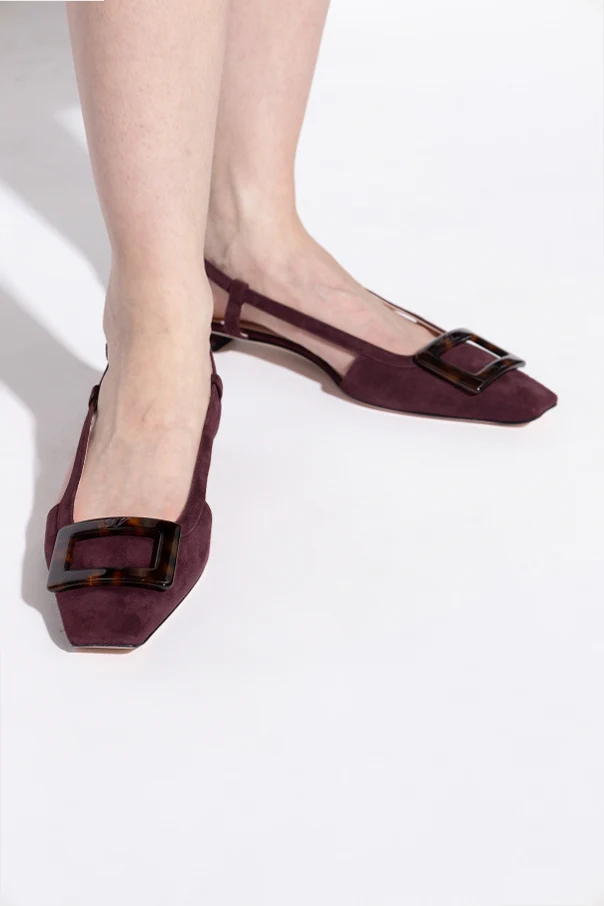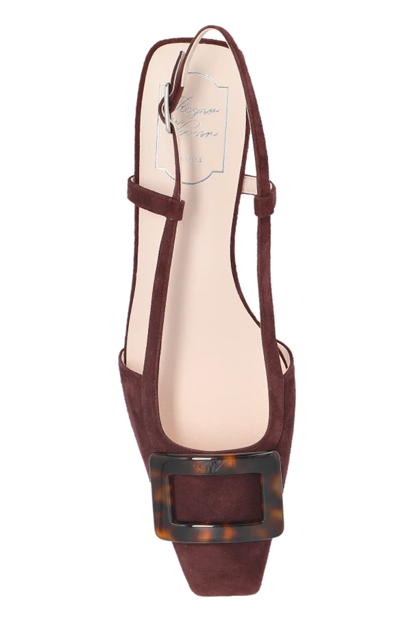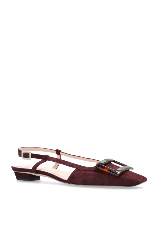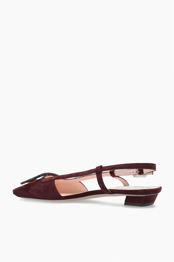 The Belle Leather Pumps by Roger Vivier exude an understated elegance, crafted for discerning women who appreciate timeless sophistication. These pumps reveal a gracefully elongated, gently pointed toe, complemented by a sleek slingback silhouette featuring a refined, adjustable strap with a delicate buckle at the heel.