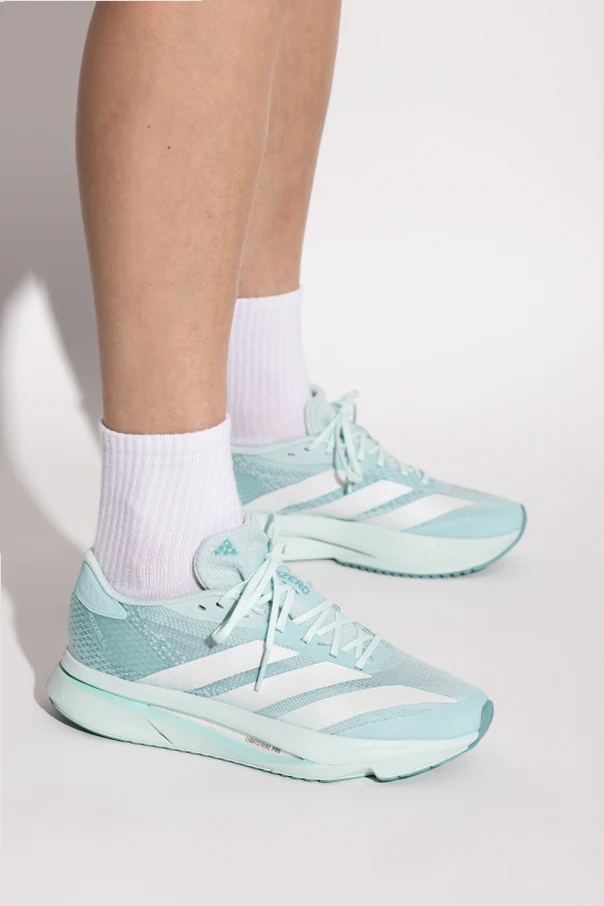 Experience refined athleticism with the ADIZERO SL2 W from the exclusive collection by celebrated designer Adidas Performance . Inspired by classic running silhouettes, these sneakers showcase a sculpted, anatomical fit and a streamlined low-cut profile, finished with an elegantly elongated toe. The refreshing icy blue hue evokes modern sophistication, artfully contrasted by the brand’s iconic triple white side stripes.