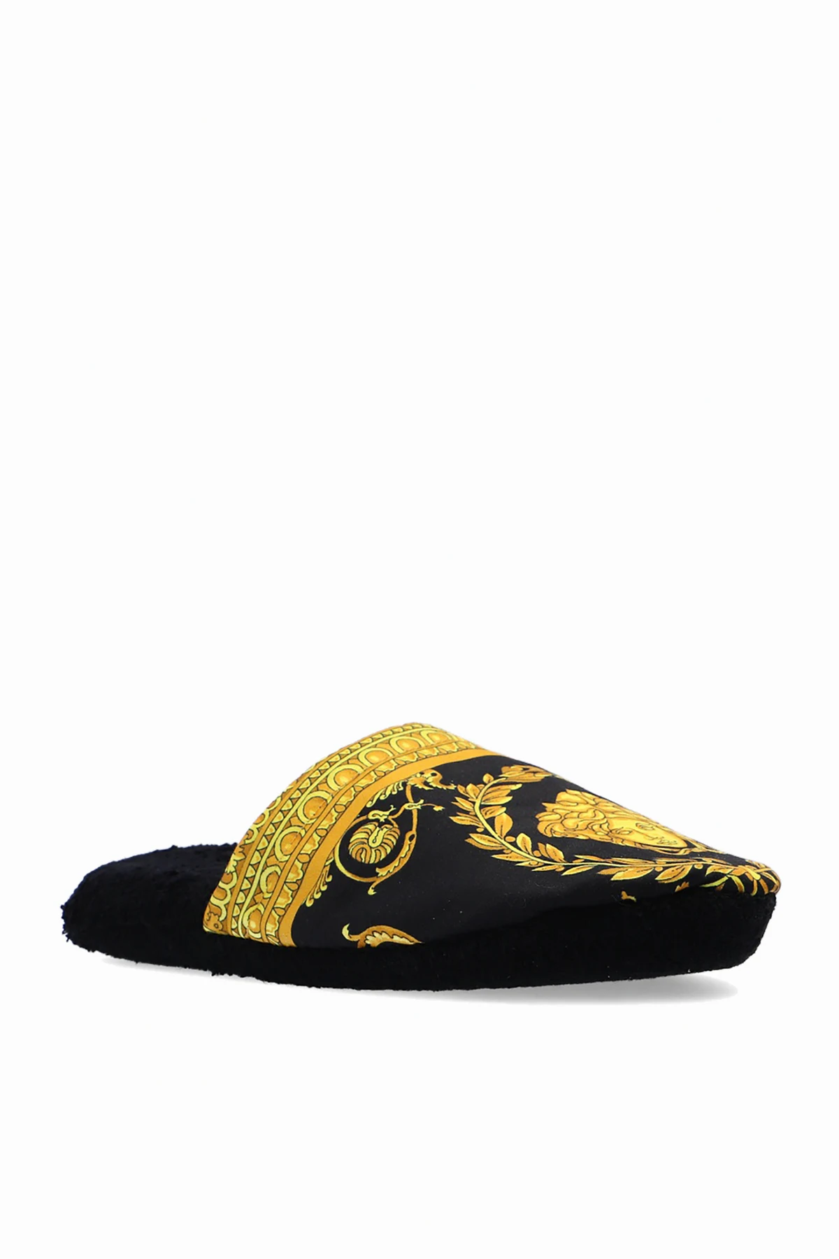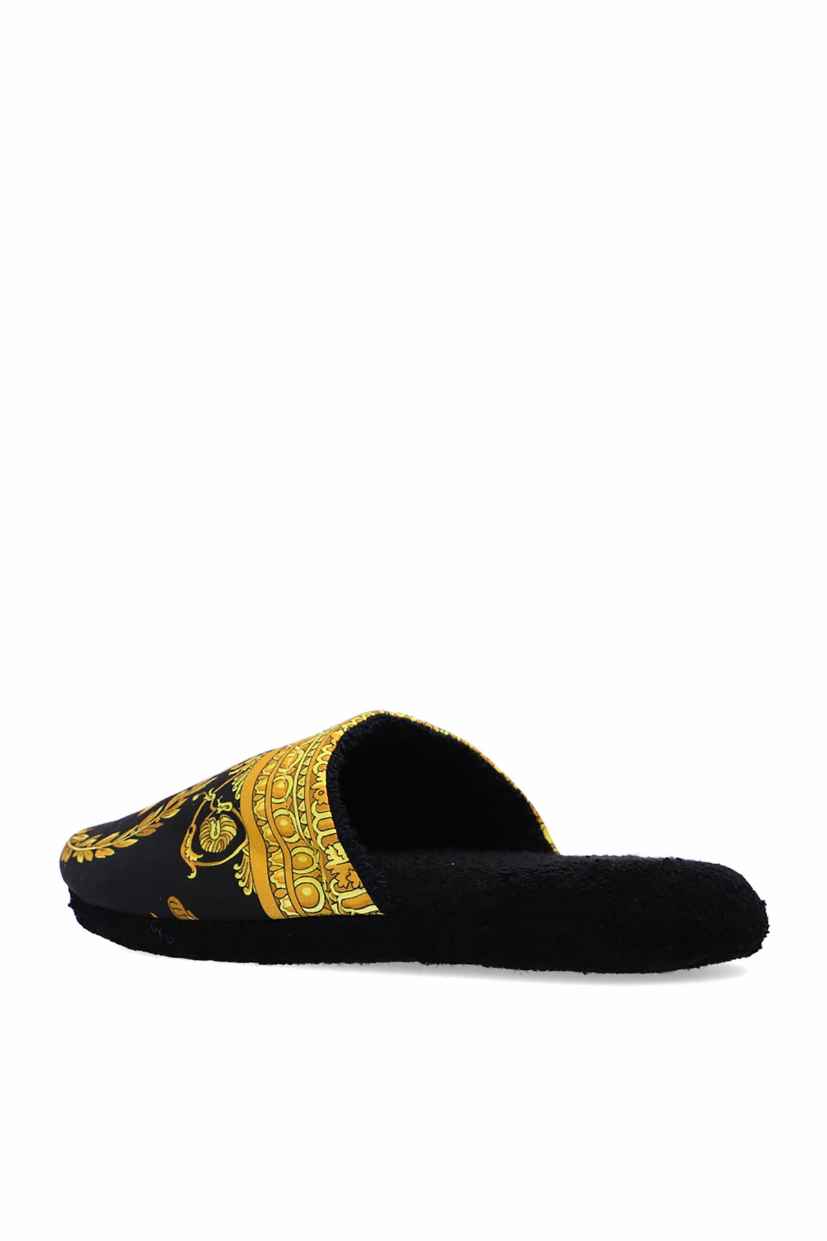Black slides from Versace Home. Crafted from cotton, this item features the iconic Baroque print in gold-tone.