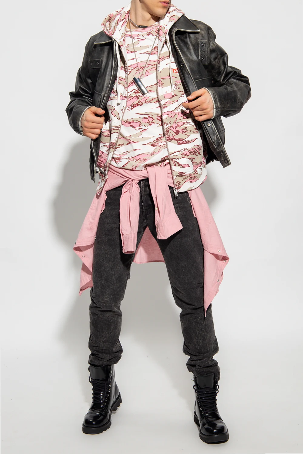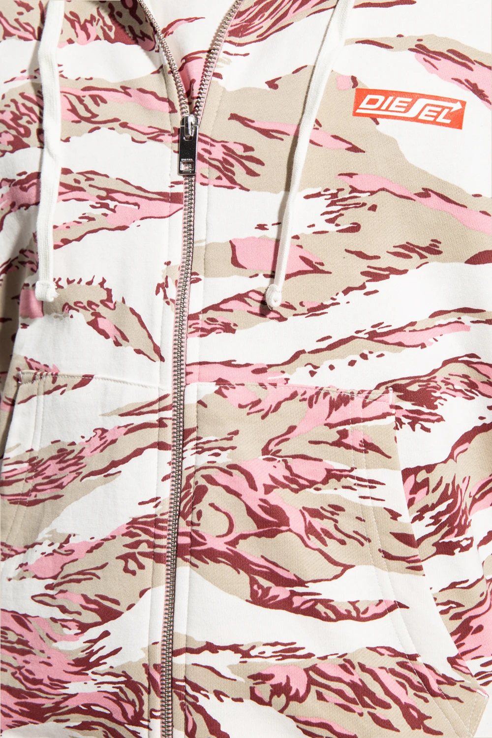 Multicolored 'S-GINN-HOOD-ZIP-HS1' patterned hoodie from Diesel. Made of cotton, this garment features a zip fastening, drawstring hood, pattern, red and white logo print, two slip pockets and ribbed trims at the hem and cuffs.