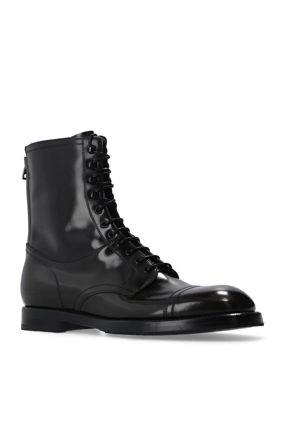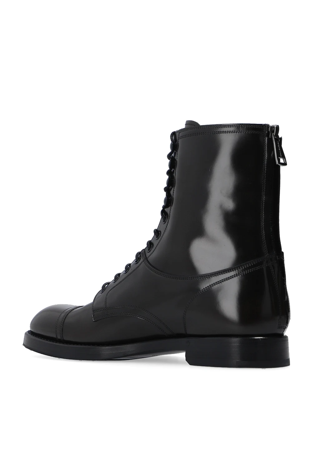 Brown ‘Michelangelo’ ankle boots from Dolce & Gabbana. Crafted from calf leather, this item features zip fastening at the back and a black and maroon leather sole with rubber inserts.