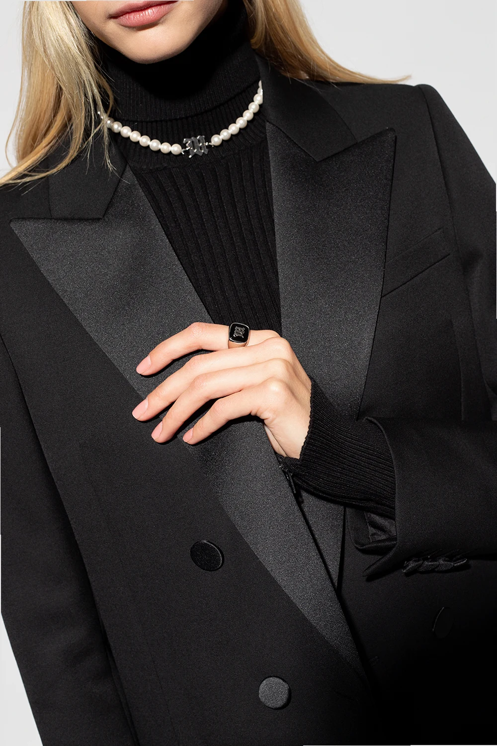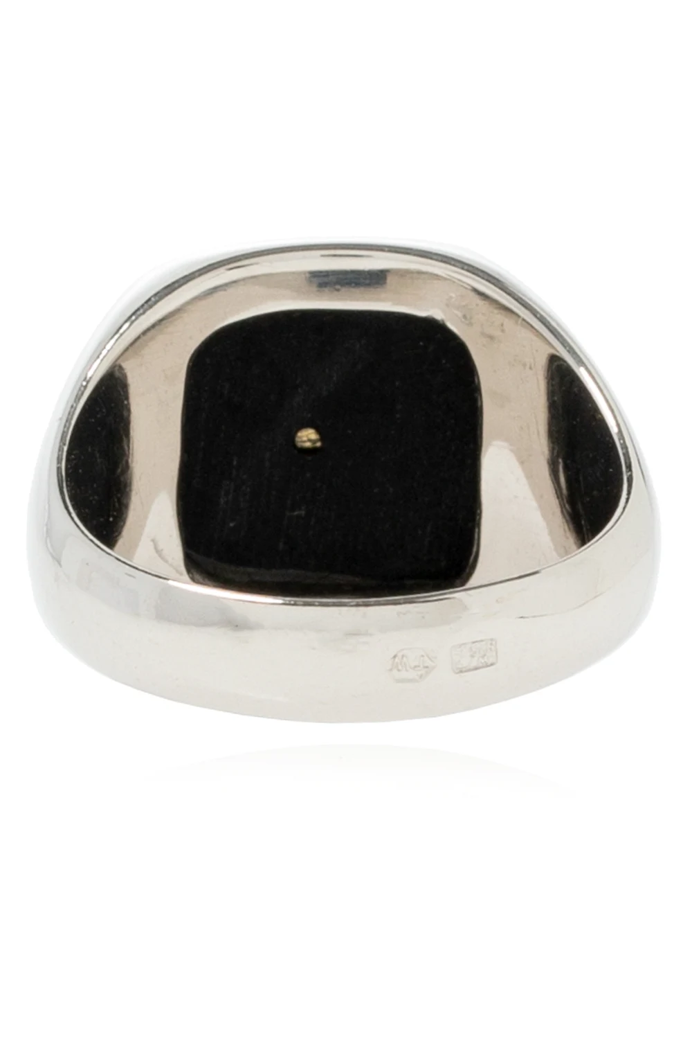 Silver-tone ring from MISBHV. Crafted from silver and black onyx, this item showcases a tactile logo.
