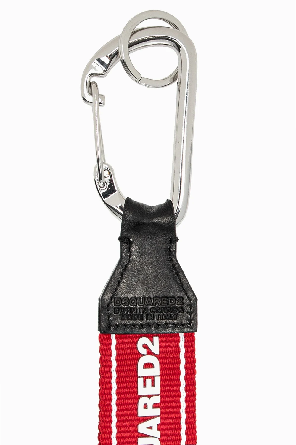 Red and black key lanyard from Dsquared2. Detailed with the label\'s logo in white, this accessory is complete with silver-tone lobster clasp and calf leather piping.