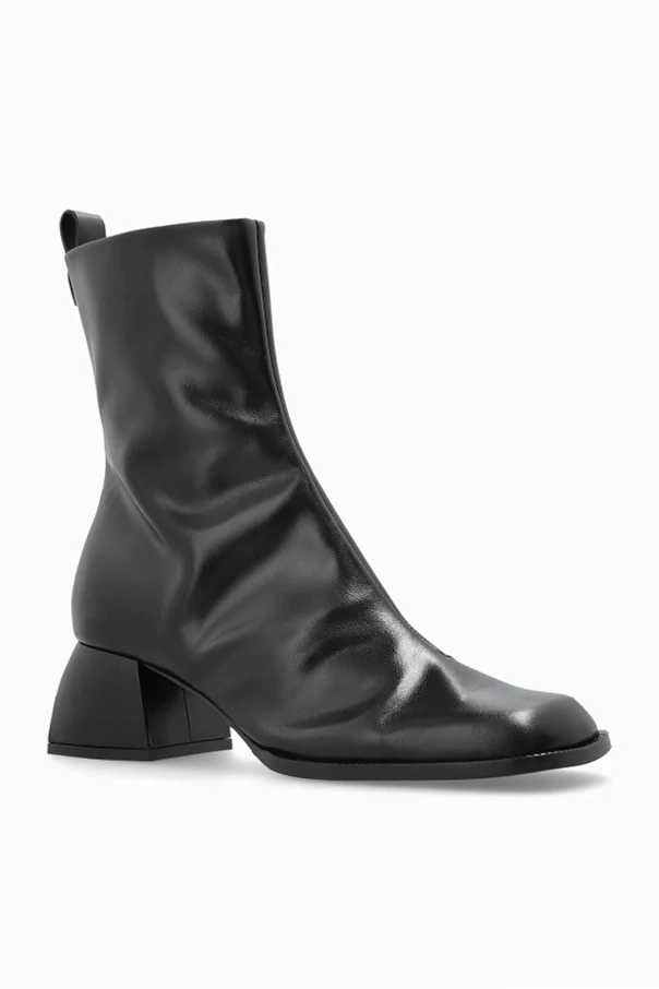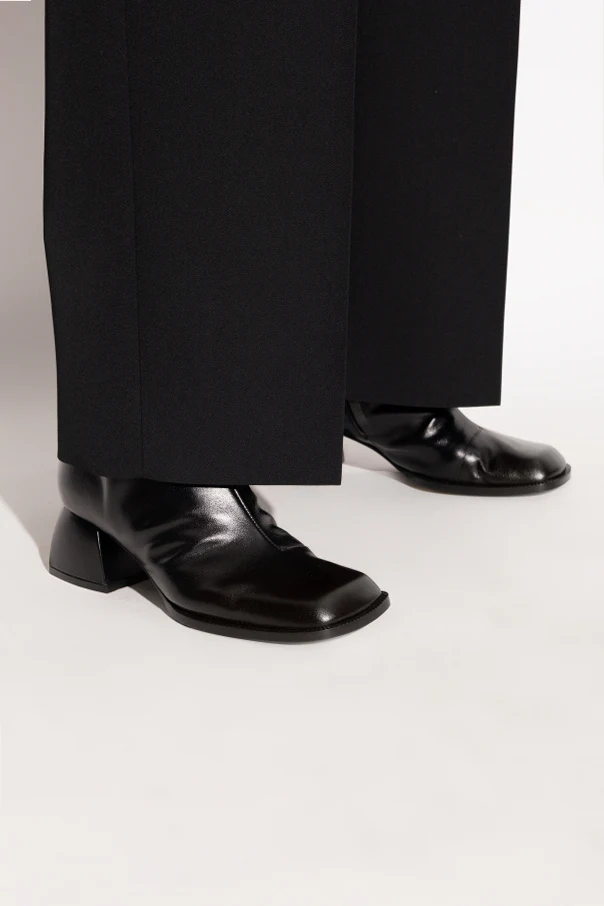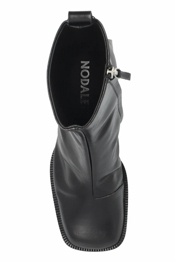 A mid-height, subtly flared block heel provides assured stability and a contemporary edge, perfectly complementing the trending pointed-square toe. The discreet zipper on the inner side ensures ease and impeccable fit, while the bold silver “NODALETO” logo emblazoned on the insole affirms exclusive authenticity.