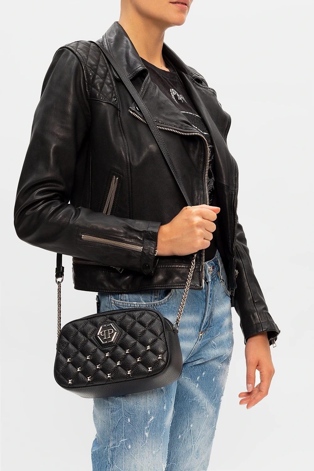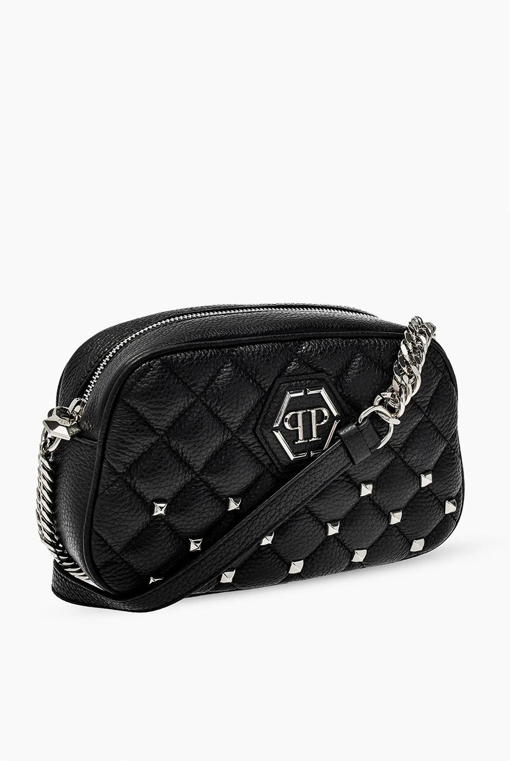 Black quilted ‘Hexagon’ shoulder bag from Philipp Plein. Crafted from leather, this item features a zip fastening, metal logo detail, silver-tone studs, an adjustable shoulder strap and a main internal compartment with one slip pocket.