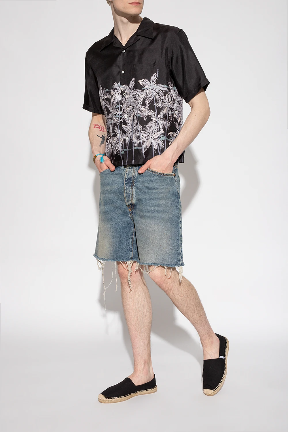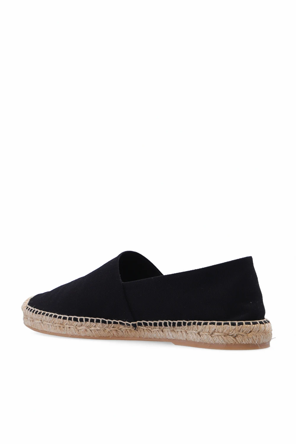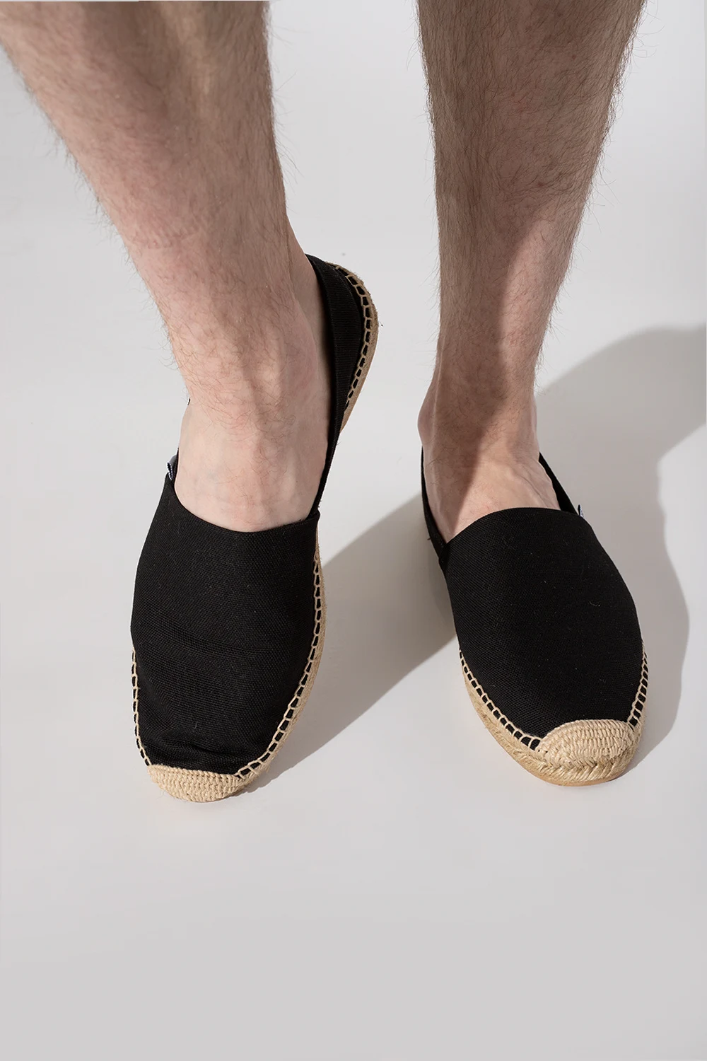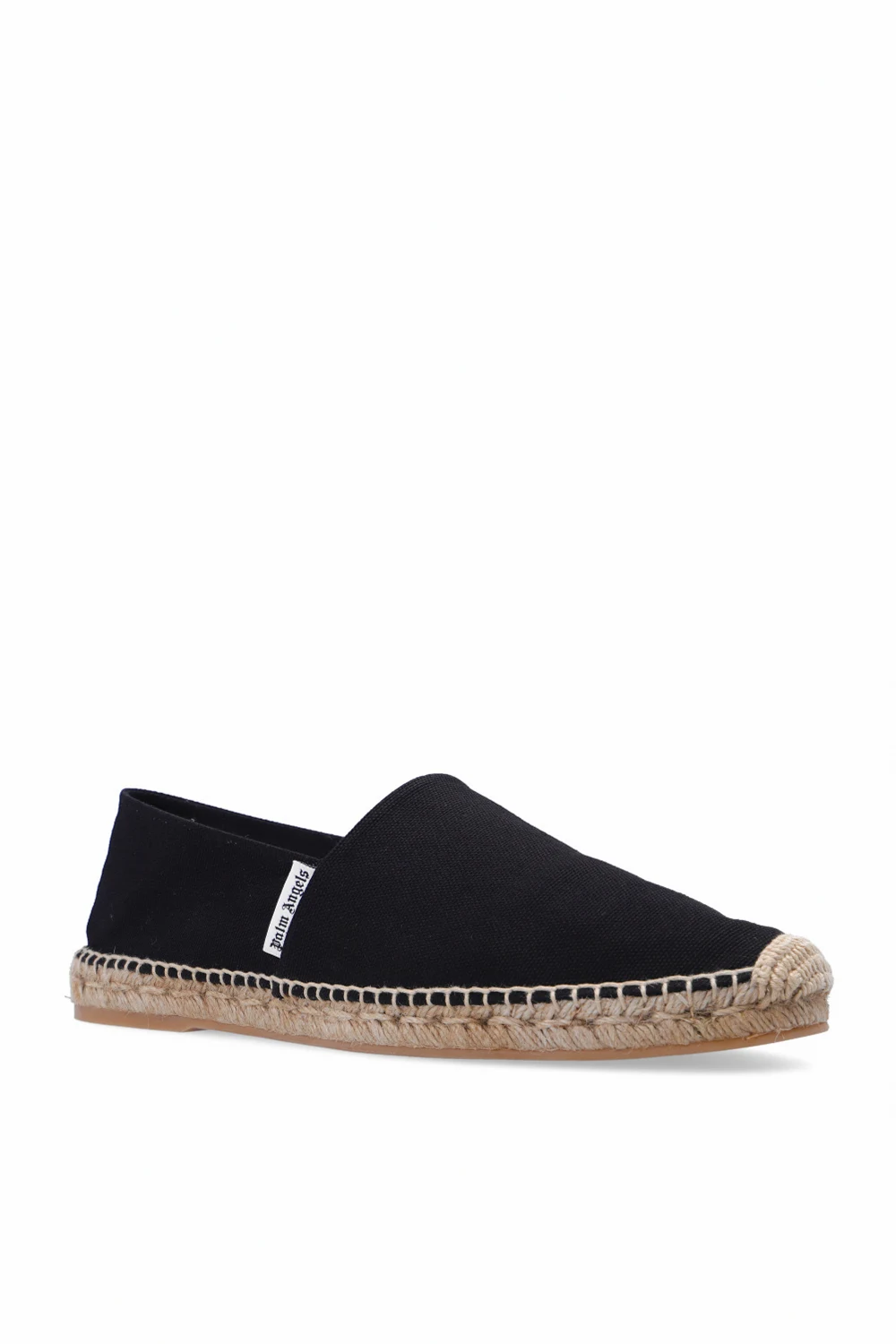 Black espadrilles from Palm Angels. Crafted from cotton, this garment features a white and black logo patch as well as a beige sole made of rubber and jute.