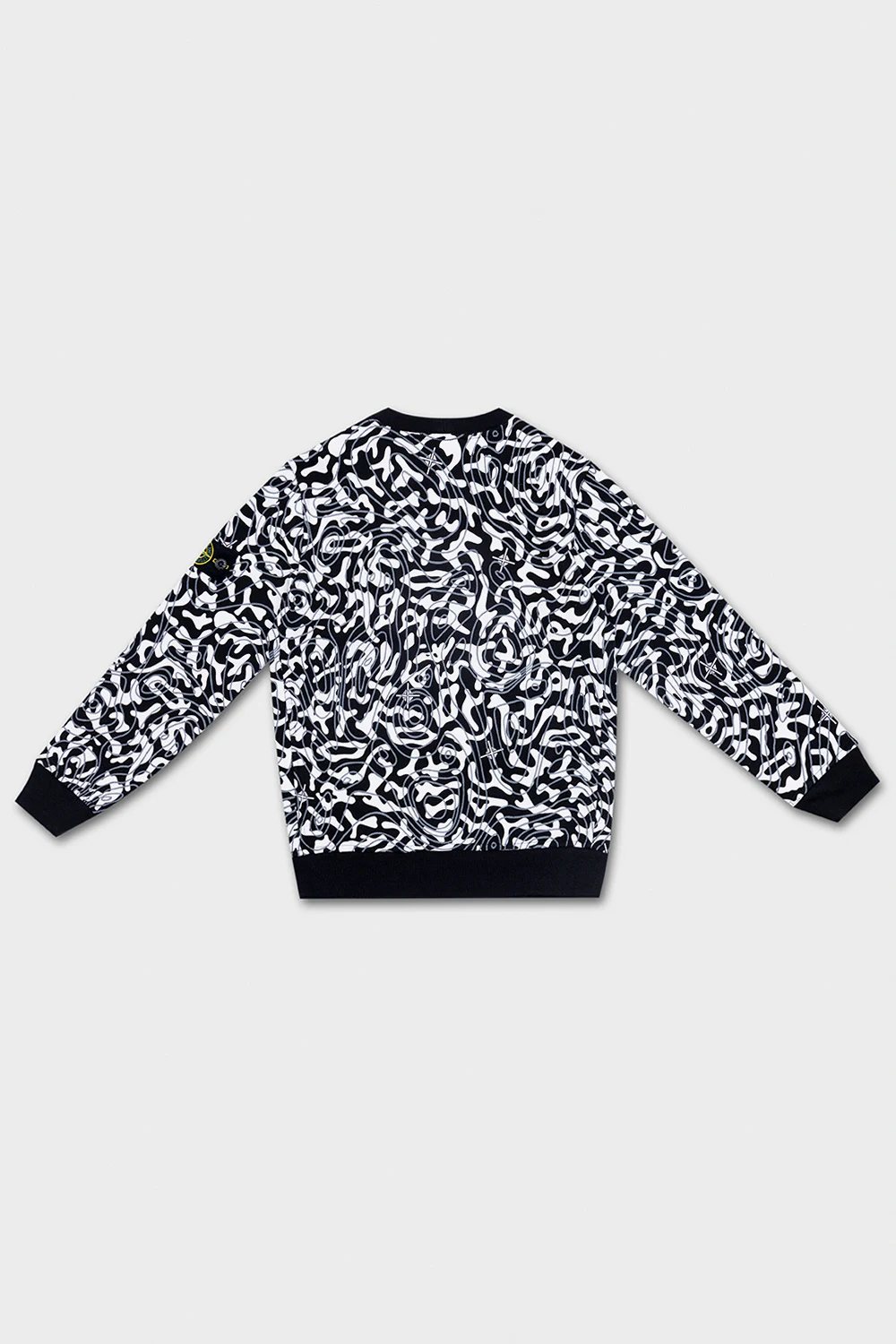Black, white and grey crewneck sweatshirt from Stone Island Kids. Crafted from cotton, this garment features a printed pattern, sleeve patch with a logo and ribbed trims.