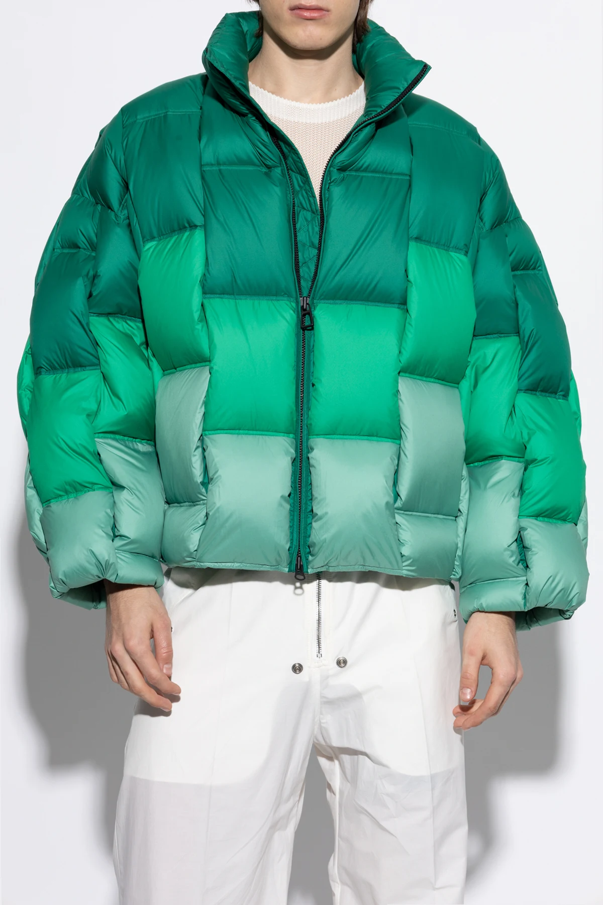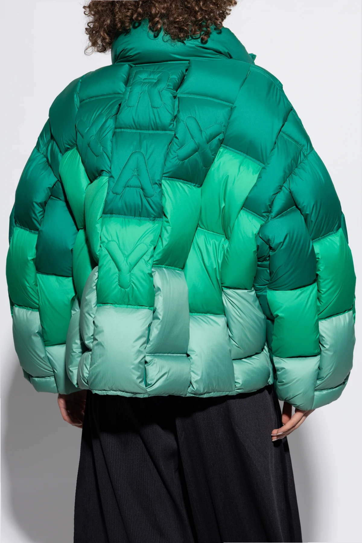 Introducing the Rectangle jacket from the exclusive RAXXY collection – an exquisite fusion of casual elegance and modern design. This green puffer jacket, meticulously crafted for women, redefines outerwear with its striking oversized silhouette and prominent quilted panels. The Rectangle jacket boasts a unique rectangular pattern that creates a bold visual statement. Made from premium puffer material, it offers unparalleled warmth and volume. The gradient green hues, transitioning from darker shades at the top to lighter tones at the bottom, add a touch of sophistication to its aesthetic. Designed for both style and functionality, this jacket features a high collar for added protection against the cold and a convenient front zipper. The subtle yet distinctive raised letters \"X,\" \"R,\" and \"A,\" integrated into the quilting on the back, highlight the brand\'s attention to detail. With practical side pockets, this jacket ensures you stay cozy while exuding effortless chic. Why Choose This Product? Luxurious puffer material for optimal warmth and comfort. Oversized, rectangular quilting for a contemporary look. High collar and dual-zipper design for enhanced protection. Gradient green tones offering a sophisticated visual appeal. Practical side pockets for everyday convenience. Exclusive RAXXY branding with unique quilted lettering.